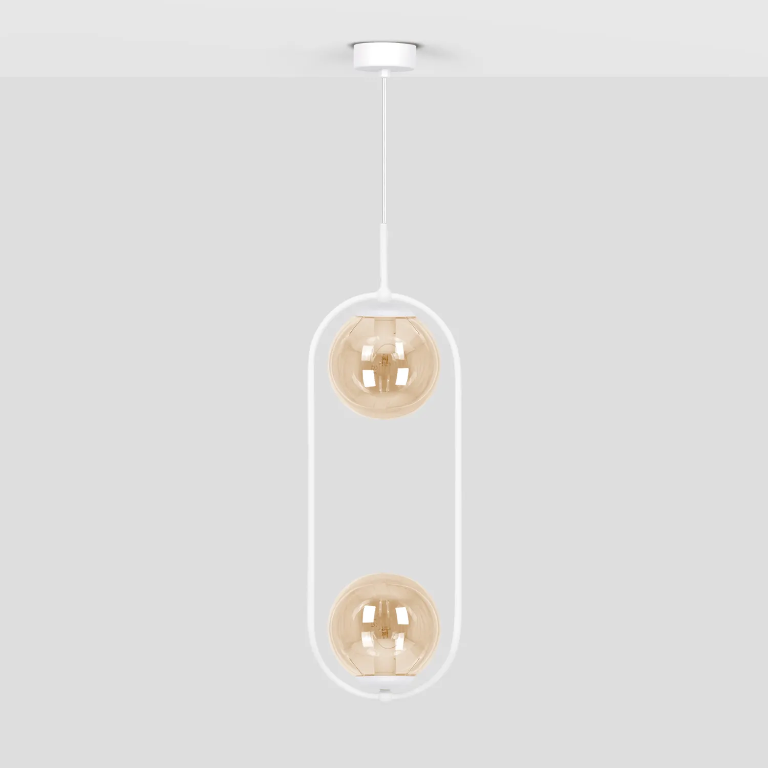 Biało-bursztynowa lampa wisząca z dwoma kloszami K-5305 z serii ARLENA