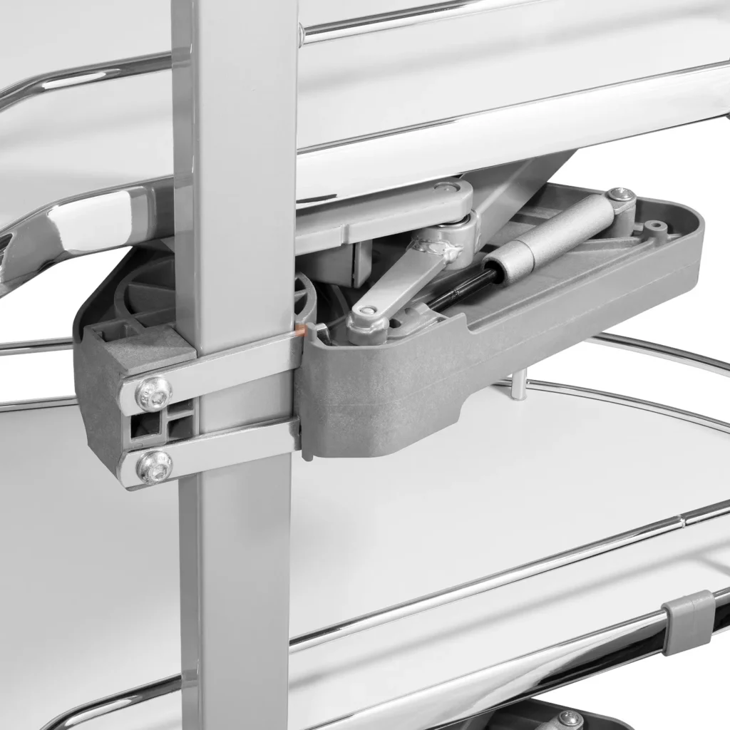 Cargo Magic Corner LAKE 900mm Nerka Lewy Biały Emuca to system funkcjonalnego zagospodarowania przestrzeni szafek narożnych dolnych. Wysuwające się niezależnie od siebie półki w znacznym stopniu poprawiają funkcjonalność oraz ułatwiają dostęp do produktów. Posiada dwie tace, które wysuwają się niezależnie od siebie. Maksymalne obciążenie jednej półki wynosi 20 kg. Tace nerki LAKE wykonane są z płyty melaminowanej, która charakteryzuje się dużą wytrzymałością i odpornością na wilgoć, uszkodzenia mechaniczne czy zużycie. Biały kolor tac i wykończenie ze stali chromowanej nadaje nerce eleganckiego wyglądu. Cargo Magic Corner LAKE posiada mechanizm dociągu, który gwarantuje bezgłośne wysunięcie półki oraz jej miękkie domknięcie. Nerka posiada regulowaną wysokość – w łatwy sposób dopasujesz ją do swojej szafki kuchennej.