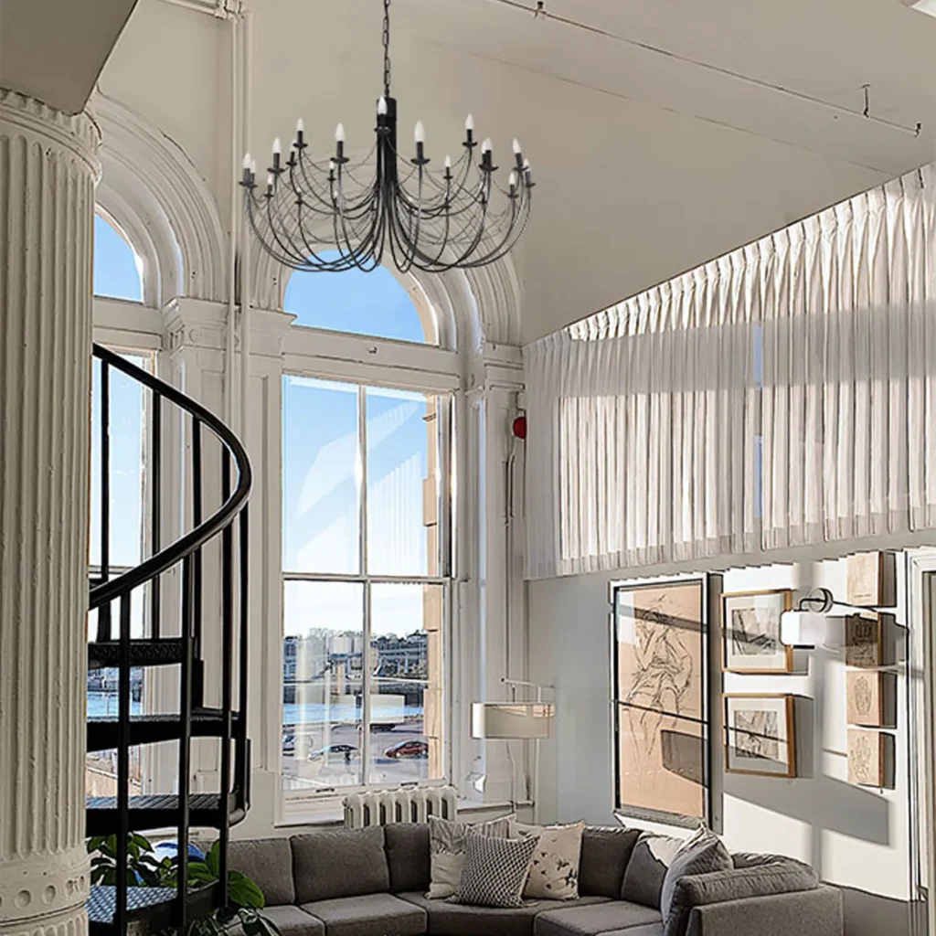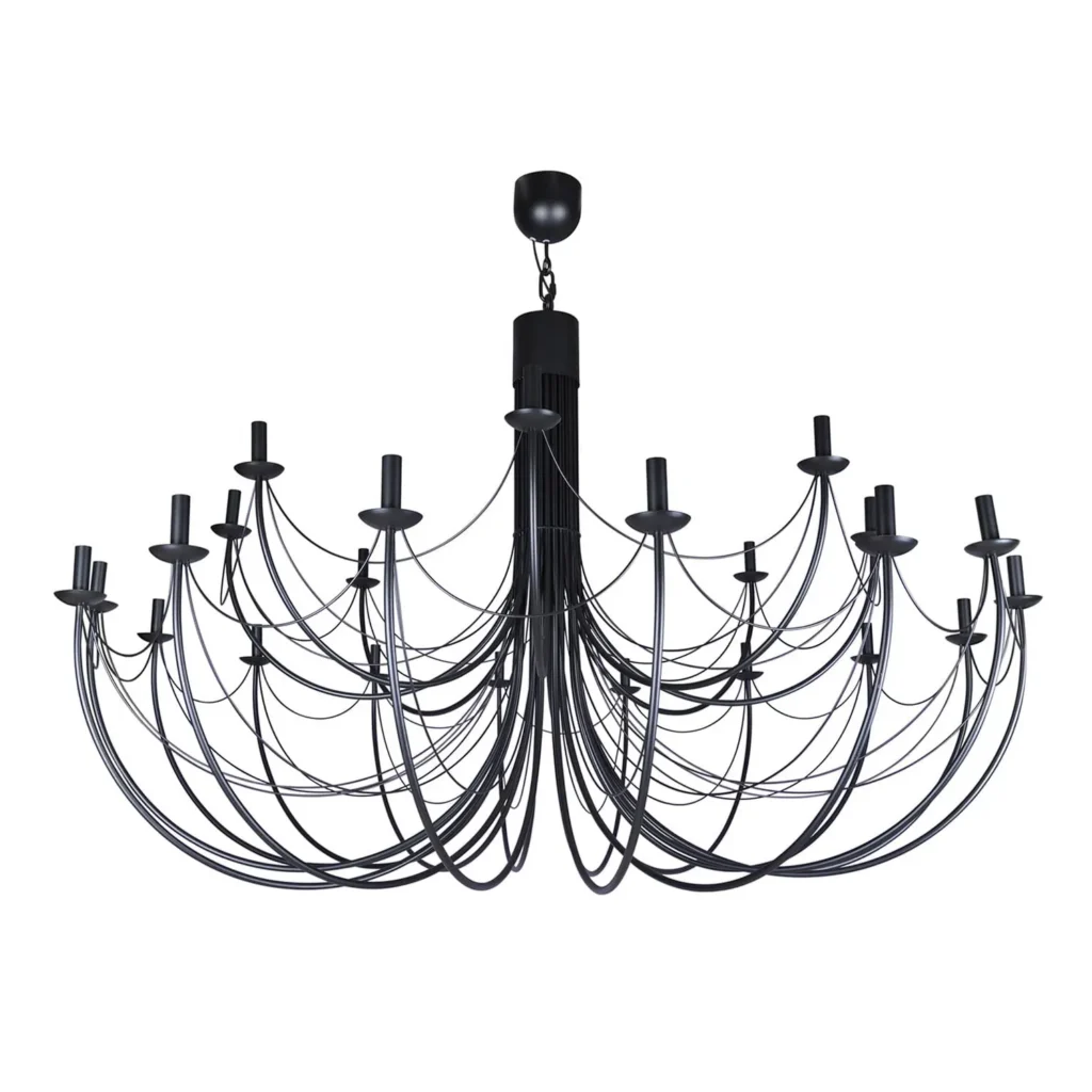 Duży żyrandol KP-17 z serii PERSEO idealnie nadaje się do dużych wnętrz z wysokim sufitem wykończonych w stylu dworkowym czy klasycznym. Lampy z serii PERSEO wyróżniają się eleganckim wyglądem. Posiadają solidną metalową konstrukcję, wykończoną w czarnym kolorze. Żyrandol KP-17 doskonale nadaje się do oświetlenia dużych pomieszczeń, ponieważ posiada aż 24 źródła światła. Dodatkowo lampa nie posiada kloszy, dzięki czemu światło nie jest niczym blokowane i jeszcze lepiej rozchodzi się po przestrzeni. Lampa pełni rolę nie tylko oświetleniową ale również dekoracyjną.