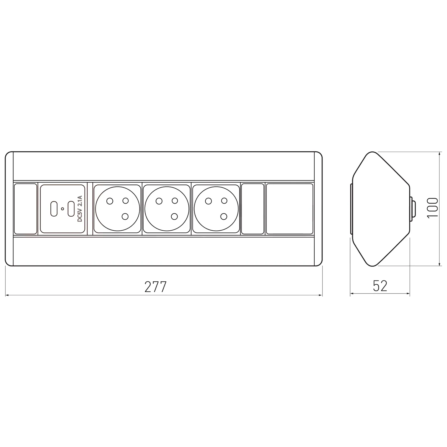 Gniazdo meblowe biurkowe Kątowe 3x gniazdo 2x USB GTV