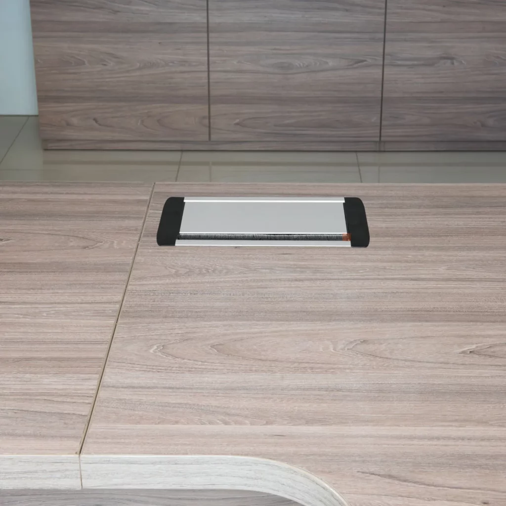 Gniazdo wpuszczane przepustowe chowane w blat GTV ma miejsce na 3 wtyczki, co pozwala na podłączenie do trzech urządzeń naraz bez problemu plączących się kabli. Dzięki specjalnej konstrukcji przedłużacz można zamknąć wraz z podłączonymi do niego wtyczkami. Gniazdo spełnia najwyższe standardy bezpieczeństwa. Innowacyjne rozwiązania zastosowane w tym produkcie umożliwiają wygodne zamocowanie gniazda pod blatem, w taki sposób, że doskonale przylega ono do krawędzi mebla.