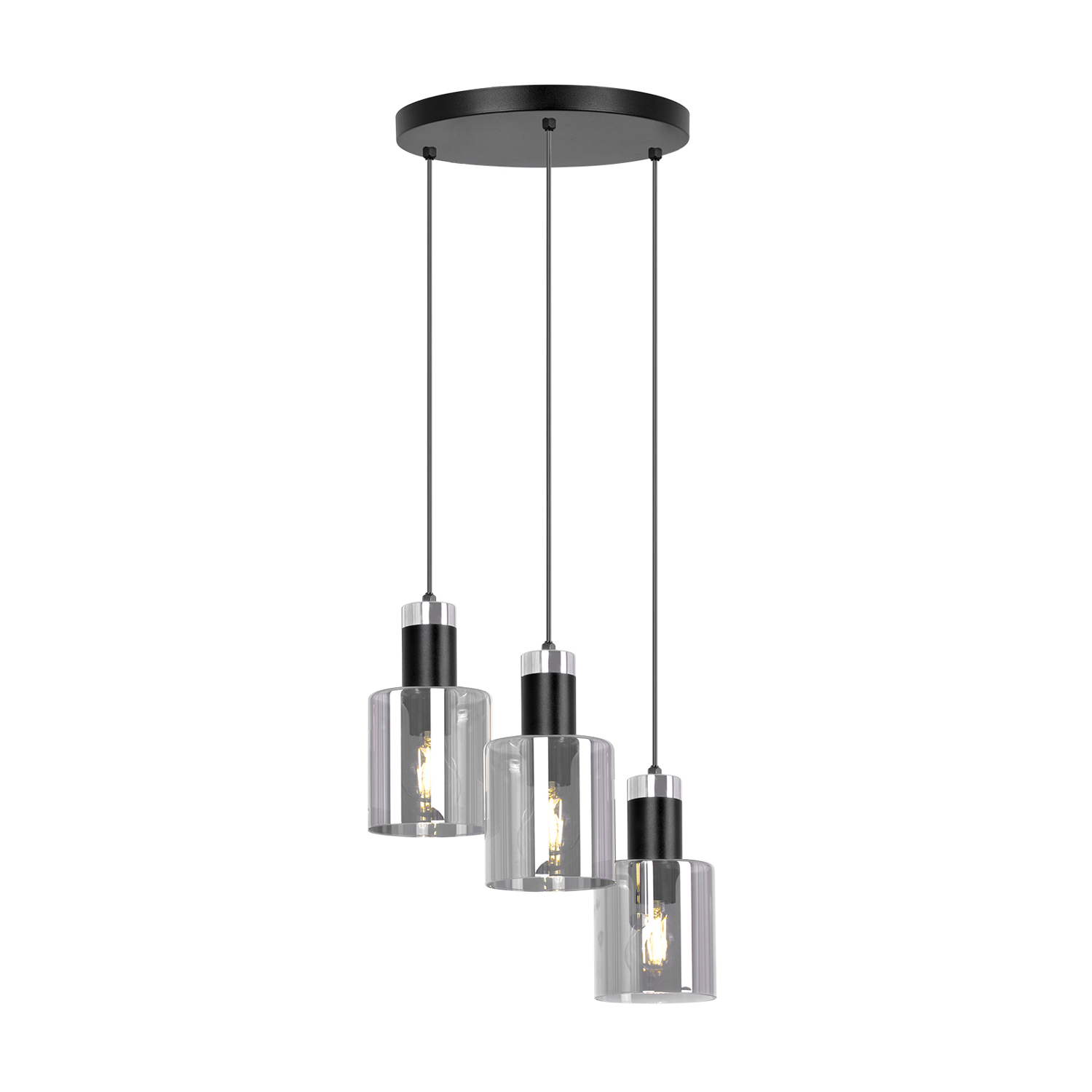 Grafitowa lampa wisząca trzy szklane klosze K-5252 z serii BRUS