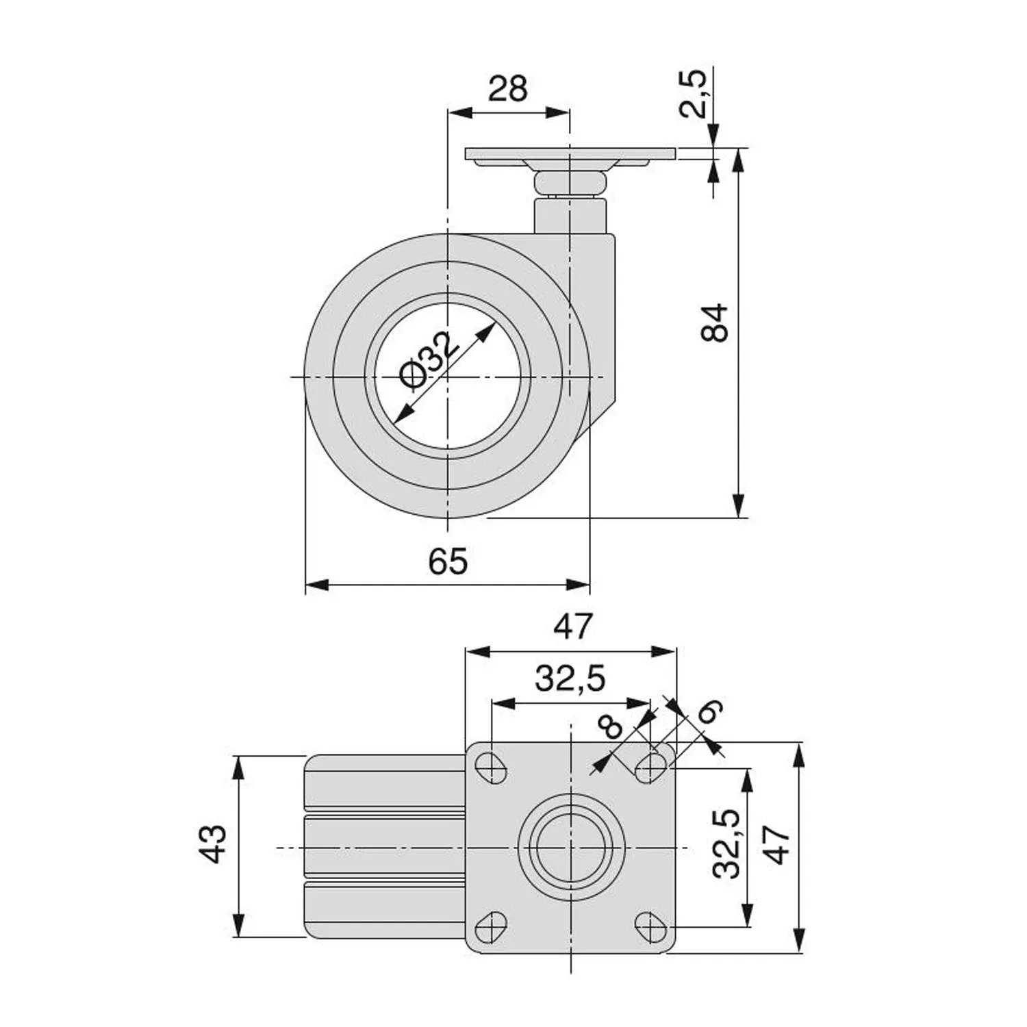 Kółko meblowe obrotowe HOLE 65mm czarne – 4szt