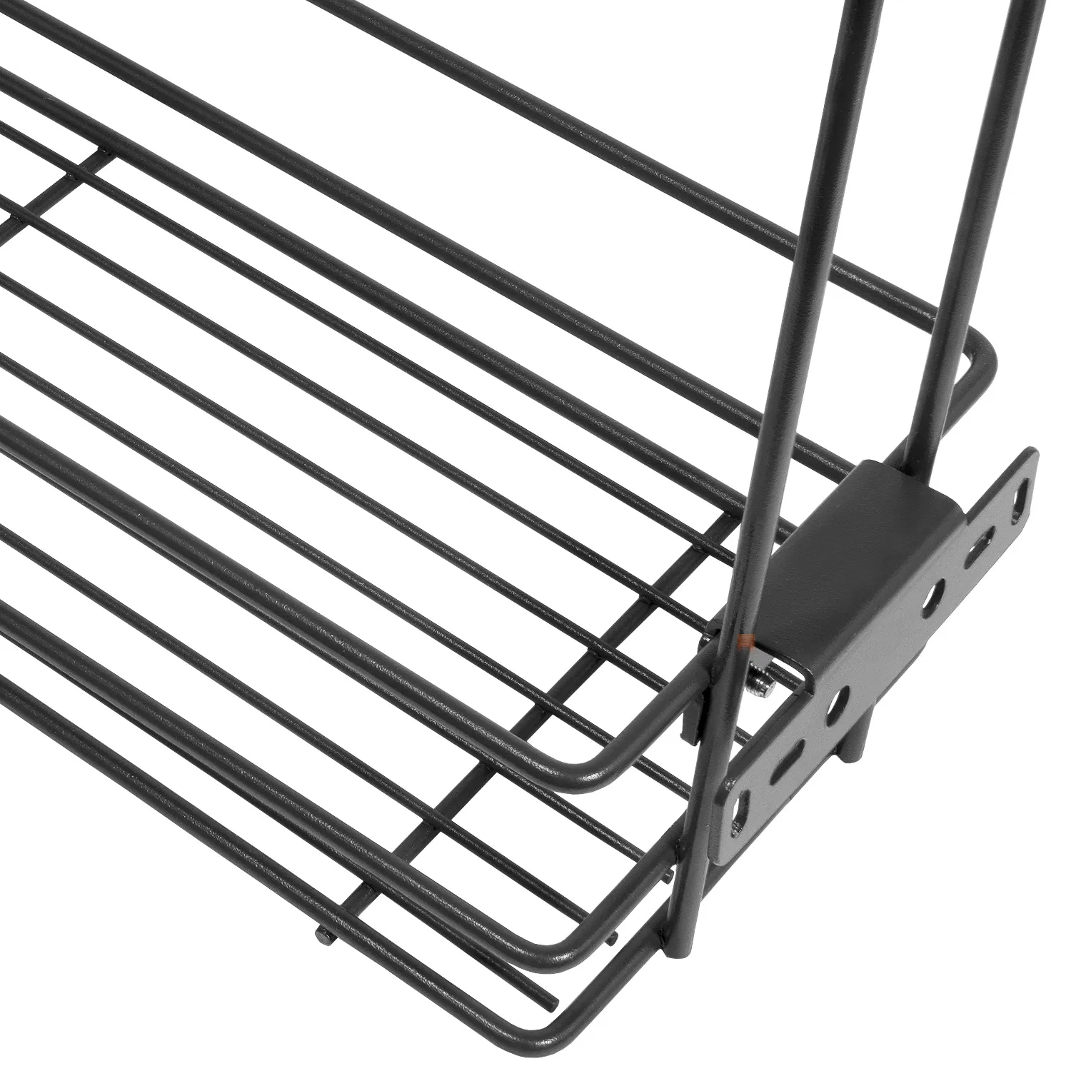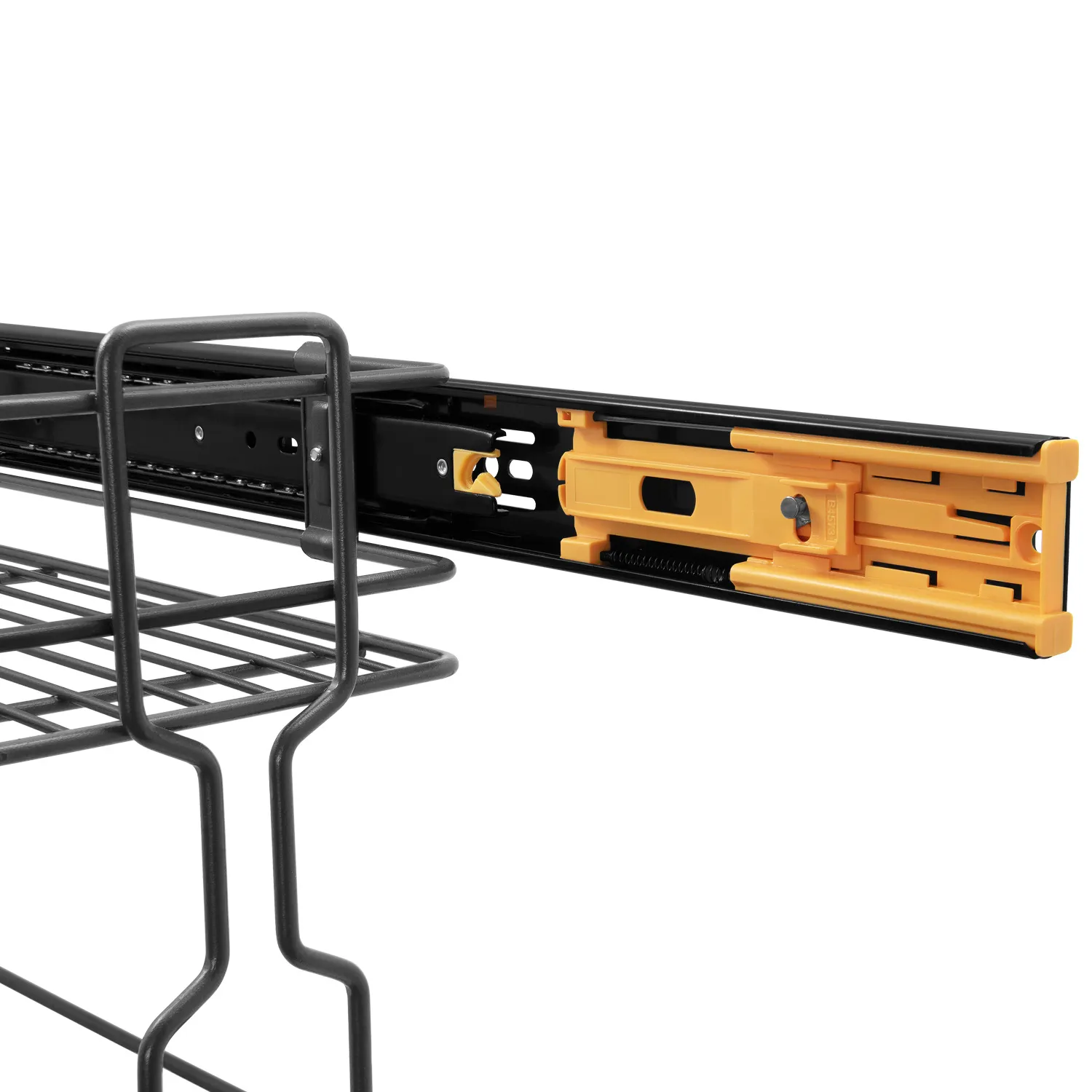 Kosz wykonany został z wysokiej jakości, wytrzymałego drutu pomalowanego proszkowo na kolor grafitowy. Jest sprzedawany w zestawie z czarną prowadnicą.