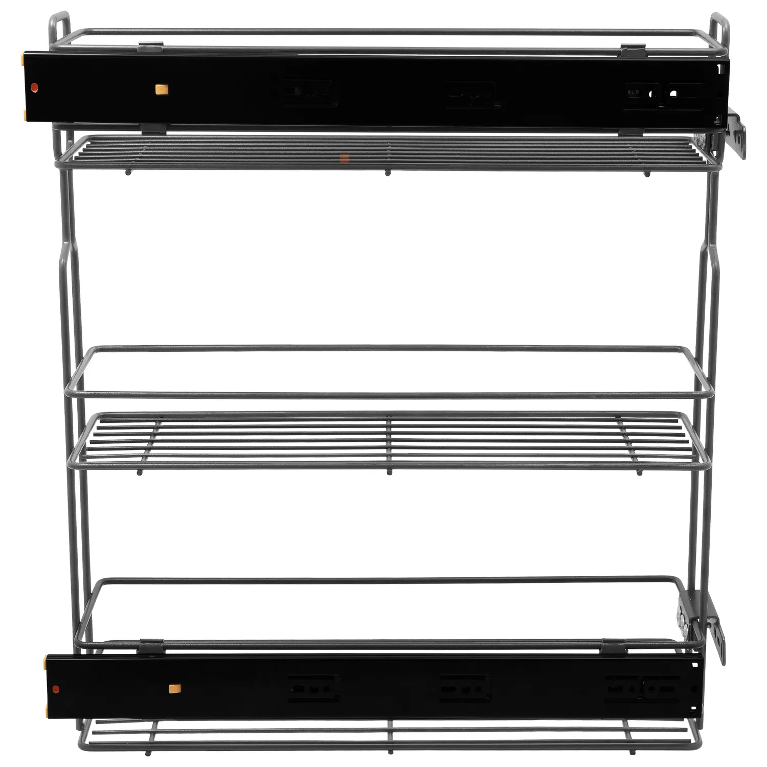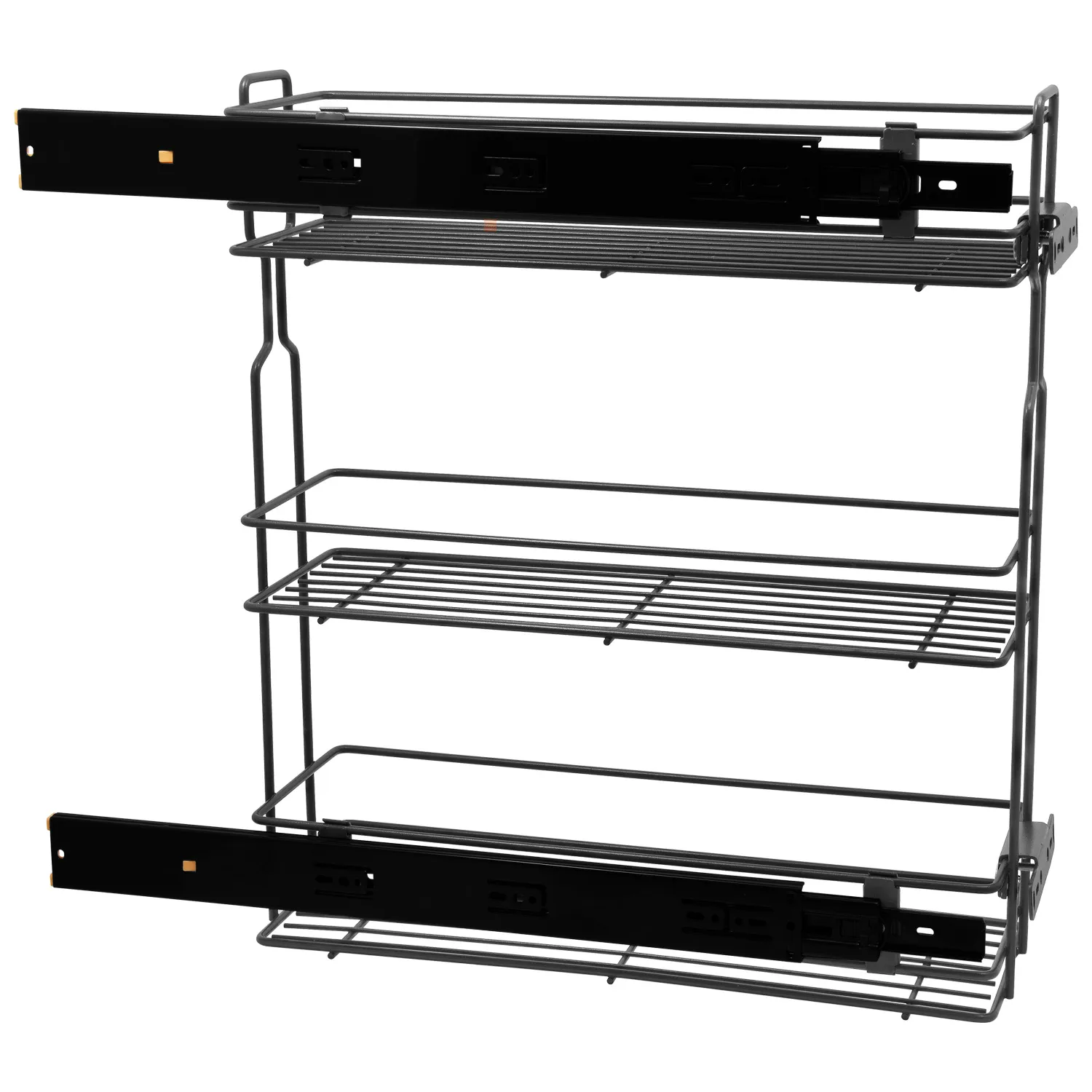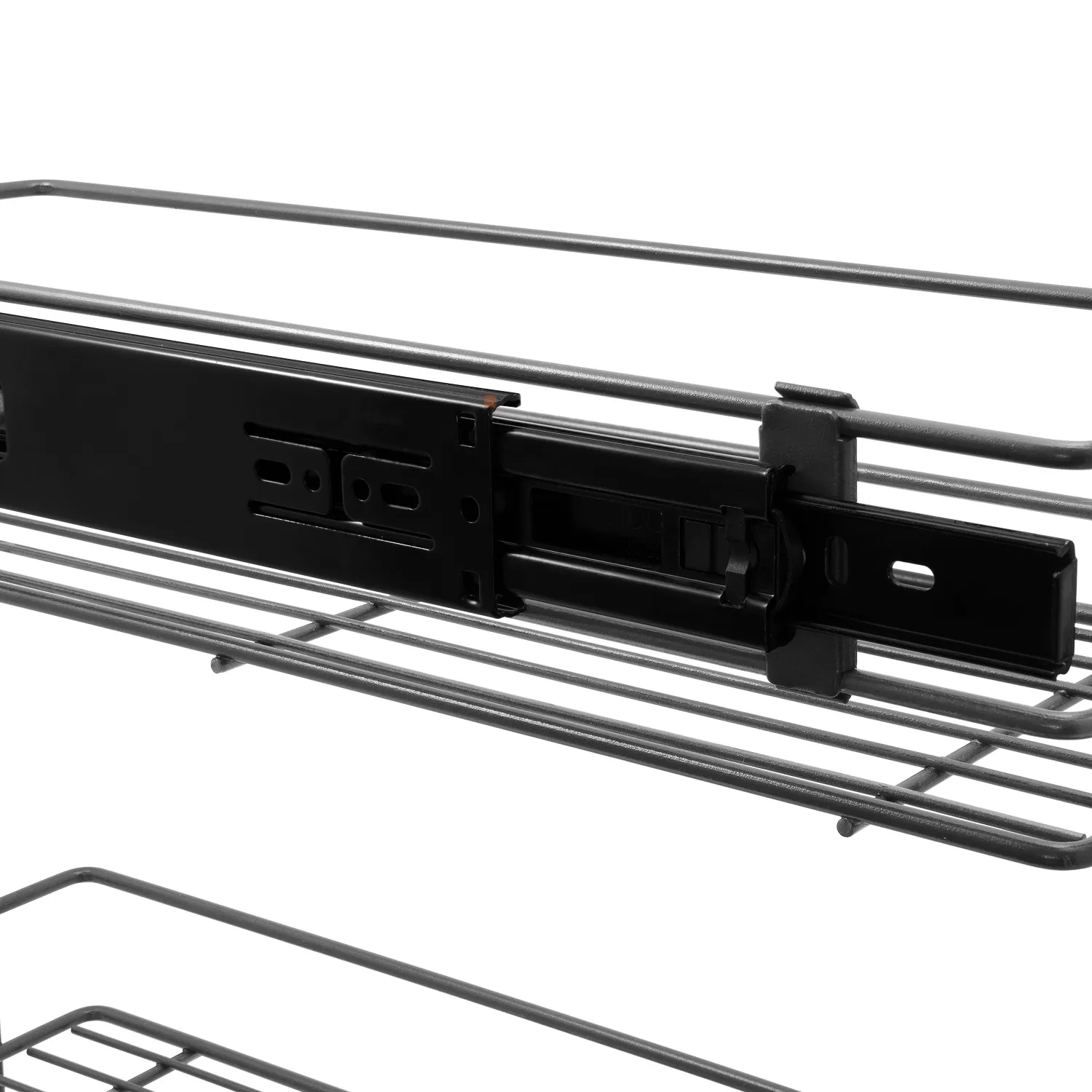 Kosz Cargo Mini 20 3 Poziomy bocznego montażu CICHY DOMYK Grafit BL przeznaczony jest do szafek kuchennych o rozmiarze 200mm. Kosz ten wyposażony jest w prowadnice pełnego wysuwu z systemem cichego domyku. System pełnego wysuwu pozwala na łatwy dostęp do zawartości szafki, a samodociąg z hamulcem gwarantuje ciche domykanie. Cargo posiada dwa mocowania do frontu meblowego wraz śrubkami i wkrętami. Łatwy montaż i demontaż kosza z części prowadnic.