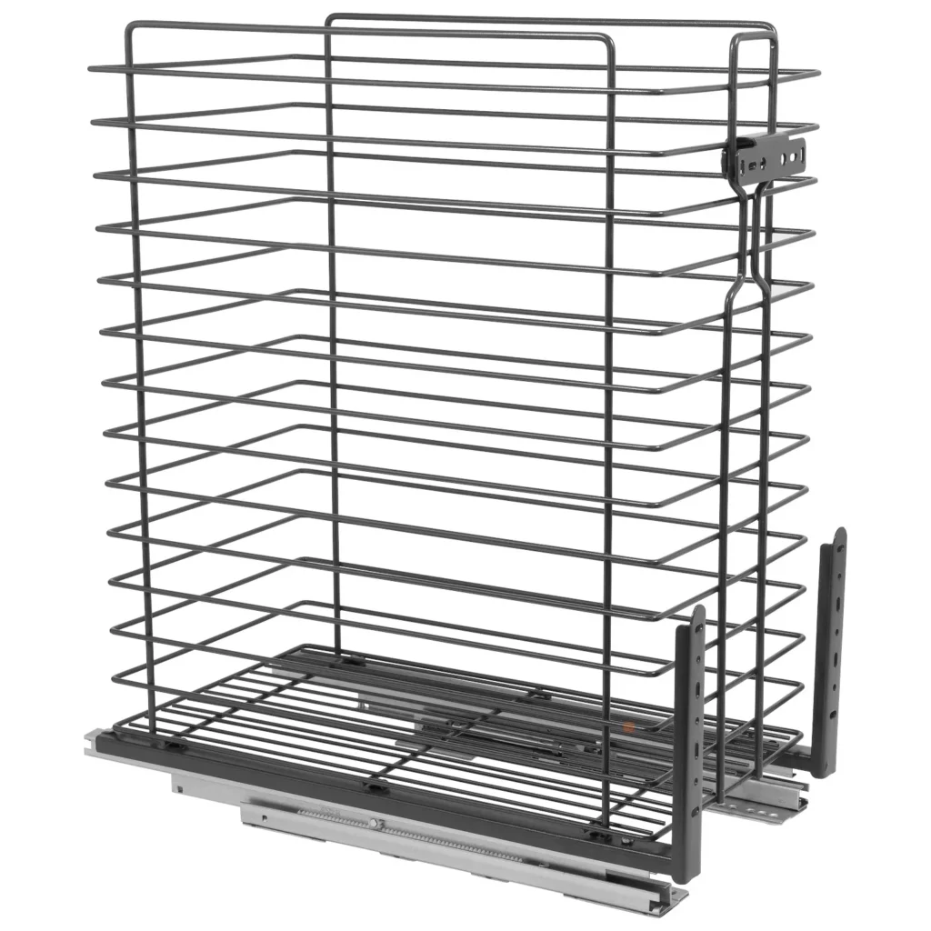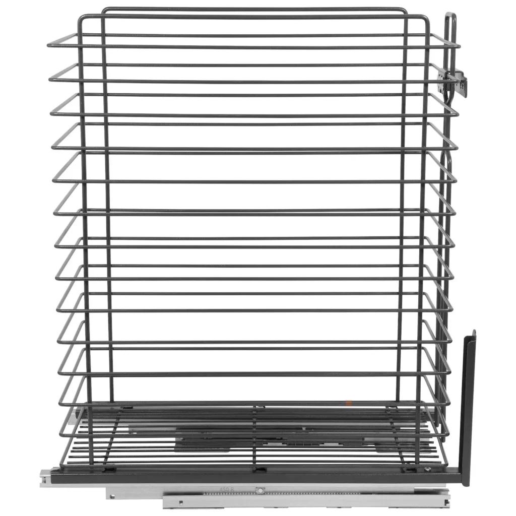 Kosz Cargo na bieliznę 30 EXCLUSIVE dolnego montażu Grafit przeznaczony jest do szafek oraz zabudów łazienkowych o szerokości 300mm. Bieliźniarka wyposażona jest w prowadnice pełnego wysuwu z systemem cichego domyku. System pełnego wysuwu pozwala na łatwy dostęp do zawartości szafki, a samodociąg z hamulcem gwarantuje ciche domykanie.