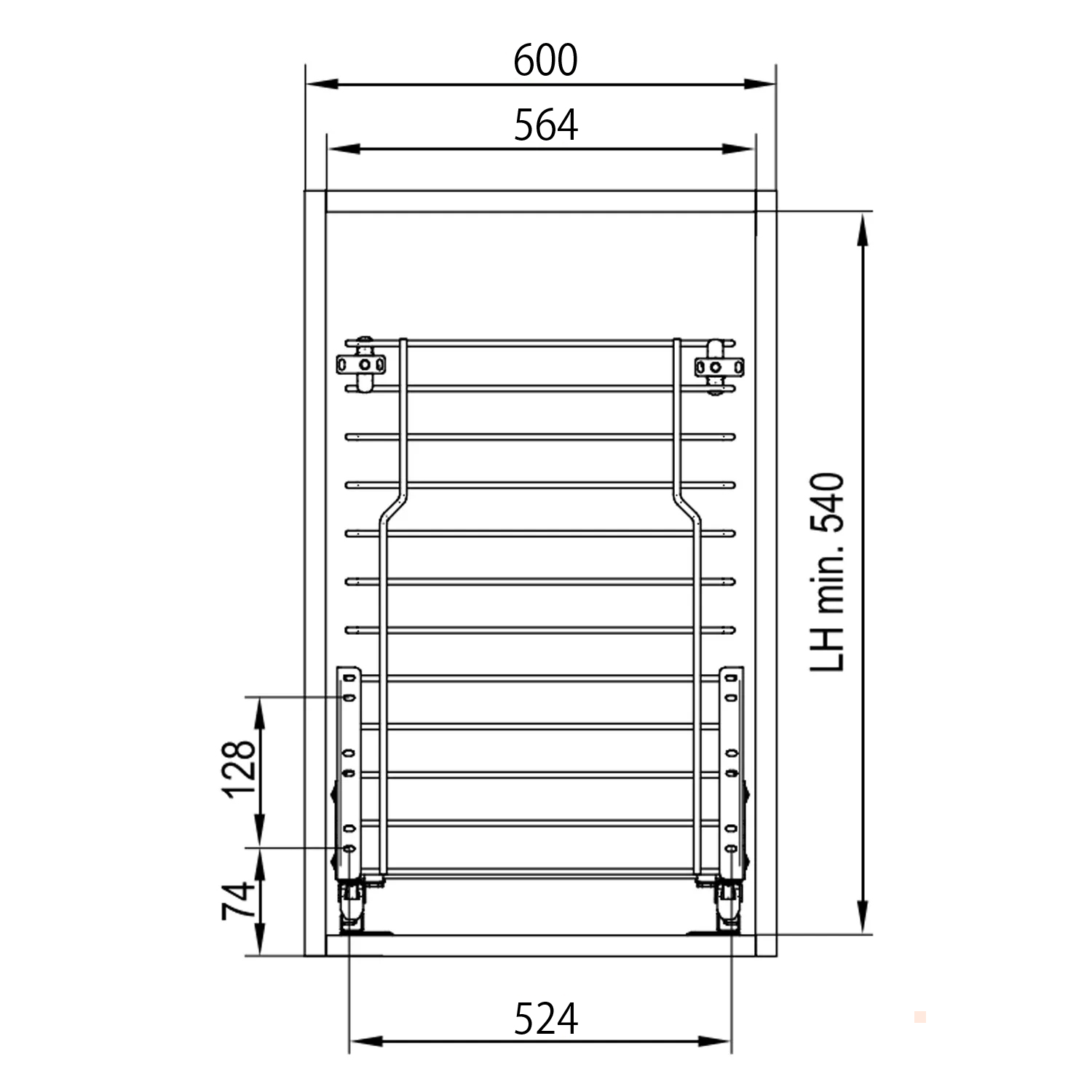 Wewnętrzne wymiary szafki | min. 564 mm X min. 540 mm X min. 460 mm (Szerokość X Wysokość X Głębokość) |