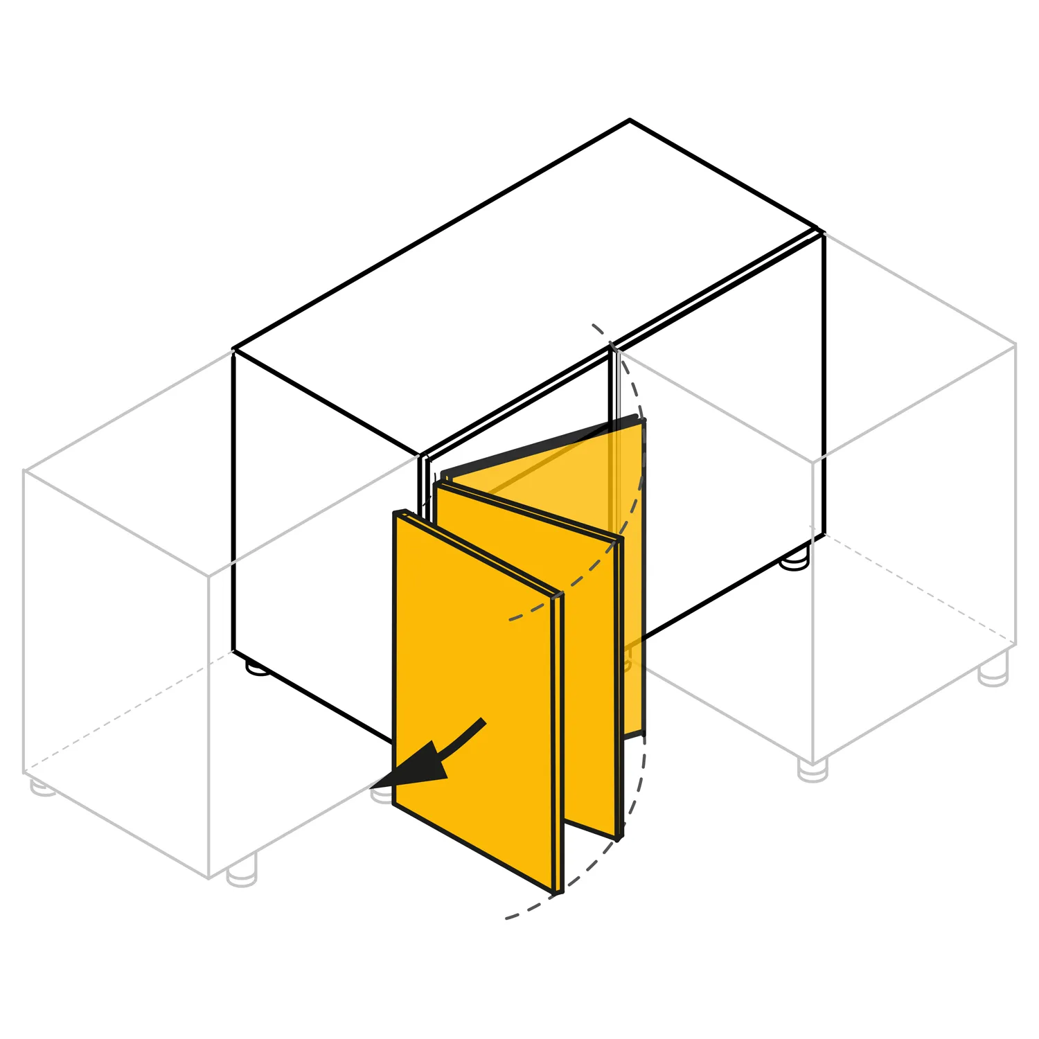 - System funkcjonalnego zagospodarowania przestrzeni szafek narożnych dolnych – cztery półki do przechowywania z pełnym dnem
