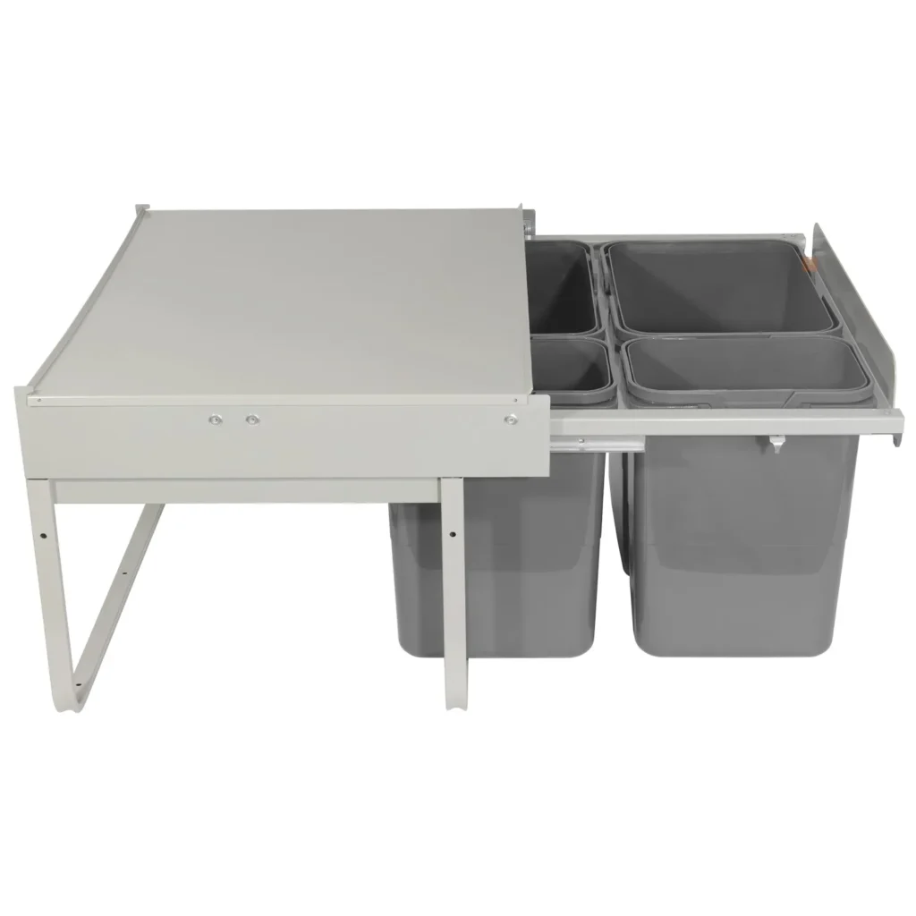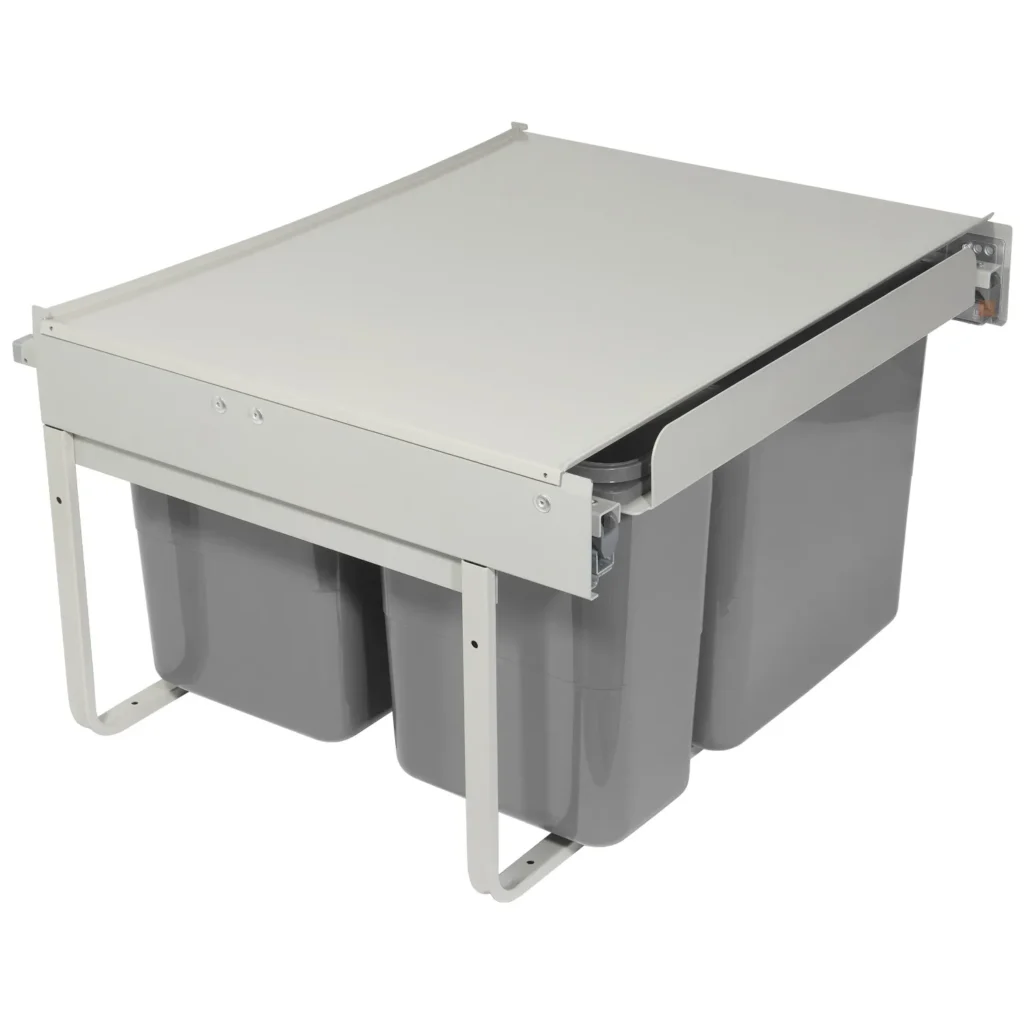 Segregator na śmieci przeznaczony jest do szuflad z frontem 60 cm. W skład produktu wchodzi stelaż, prowadnice pełnego wysuwu z miękkim dociągiem, dwa kosze o pojemności 15L i dwa kosze o pojemności 7L.