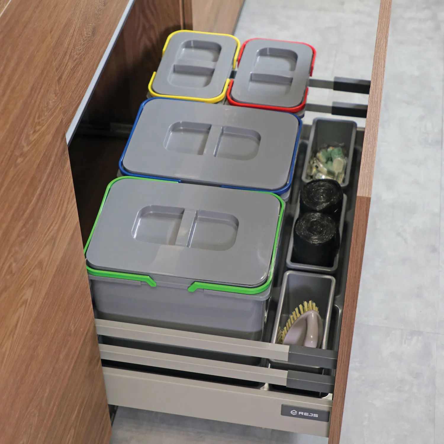 Kosz Segregator na śmieci Sortownik 80 2x15L 2x7L PRAKTIKO Rejs to innowacyjne rozwiązanie dla efektywnej segregacji i utrzymania porządku w gospodarstwie domowym. Ten nowoczesny kosz na śmieci posiada dwa pojemniki o pojemności 15 litrów oraz dwa pojemniki o pojemności 7 litrów, co pozwala na oddzielne przechowywanie różnych rodzajów odpadów.