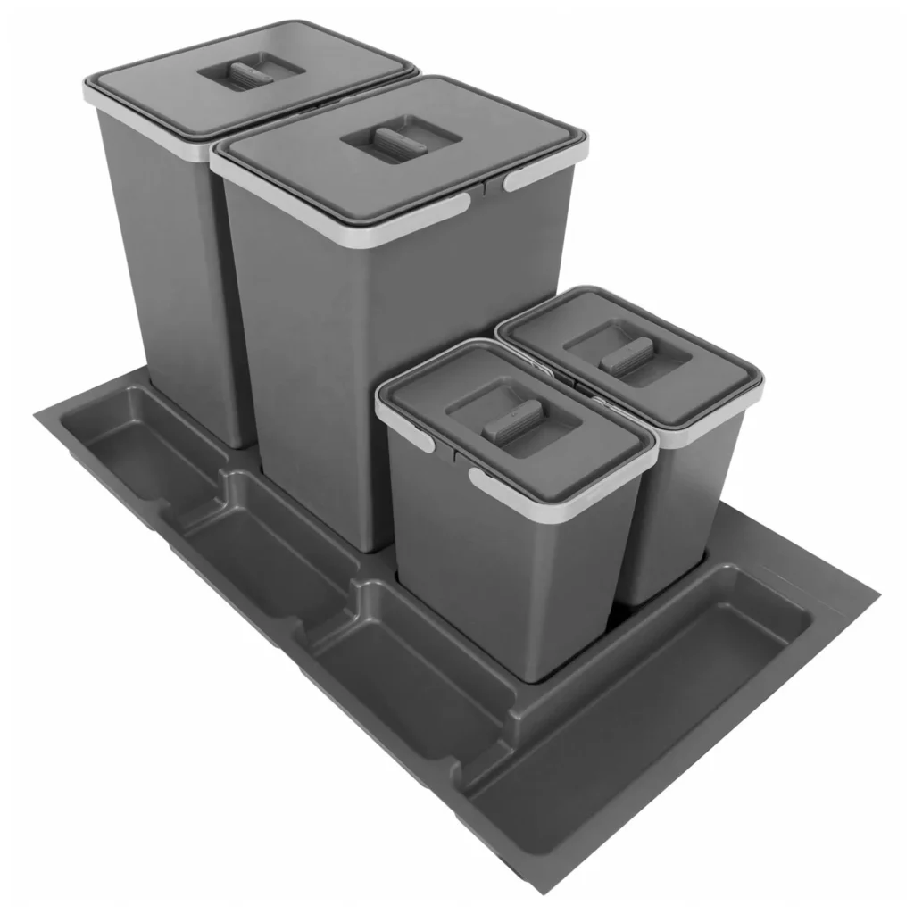 Kosz Segregator na śmieci Sortownik 90 2x24L 2x7L FUTURE CONFIG został stworzony specjalnie do wykorzystania w szufladach o szerokości 90 cm. Ten innowacyjny produkt składa się z wkładu, który można dostosować poprzez przycięcie, dwóch pojemników o pojemności 24 litry oraz dwóch pojemników o pojemności 7 litrów. Dzięki temu doskonałemu rozwiązaniu, segregowanie odpadów staje się łatwe i przyjemne.