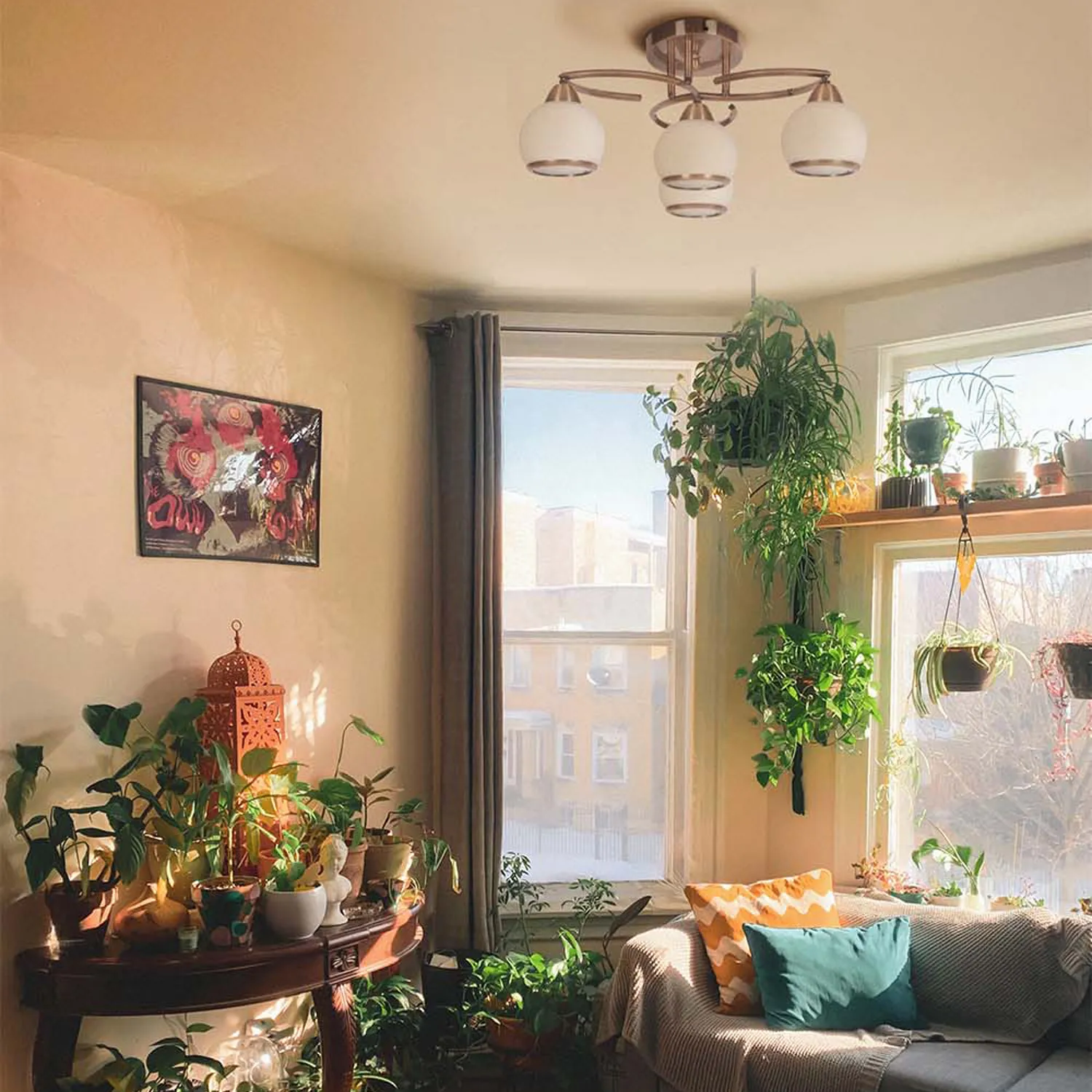 Lampa sufitowa K-JSL-6084/4 AB z serii LARA idealnie nadaje się do wnętrz wykończonych w stylu klasycznym. Lampy z serii LARA wyróżniają się eleganckim połączeniem kolorów: patynowego i białego. Stonowana kolorystyka czyni je uniwersalnymi i sprawia, że pasują do wielu wnętrz. Solidne wykonanie z metalu i szkła jest gwarancją długotrwałego użytkowania. Żyrandol posiada możliwość wymiany źródła światła, dzięki czemu można indywidualnie dobrać jego moc i barwę. Podstawa lampy jest wygięta w spiralny wzór, dzięki czemu lampa pełni również rolę dekoracyjną.