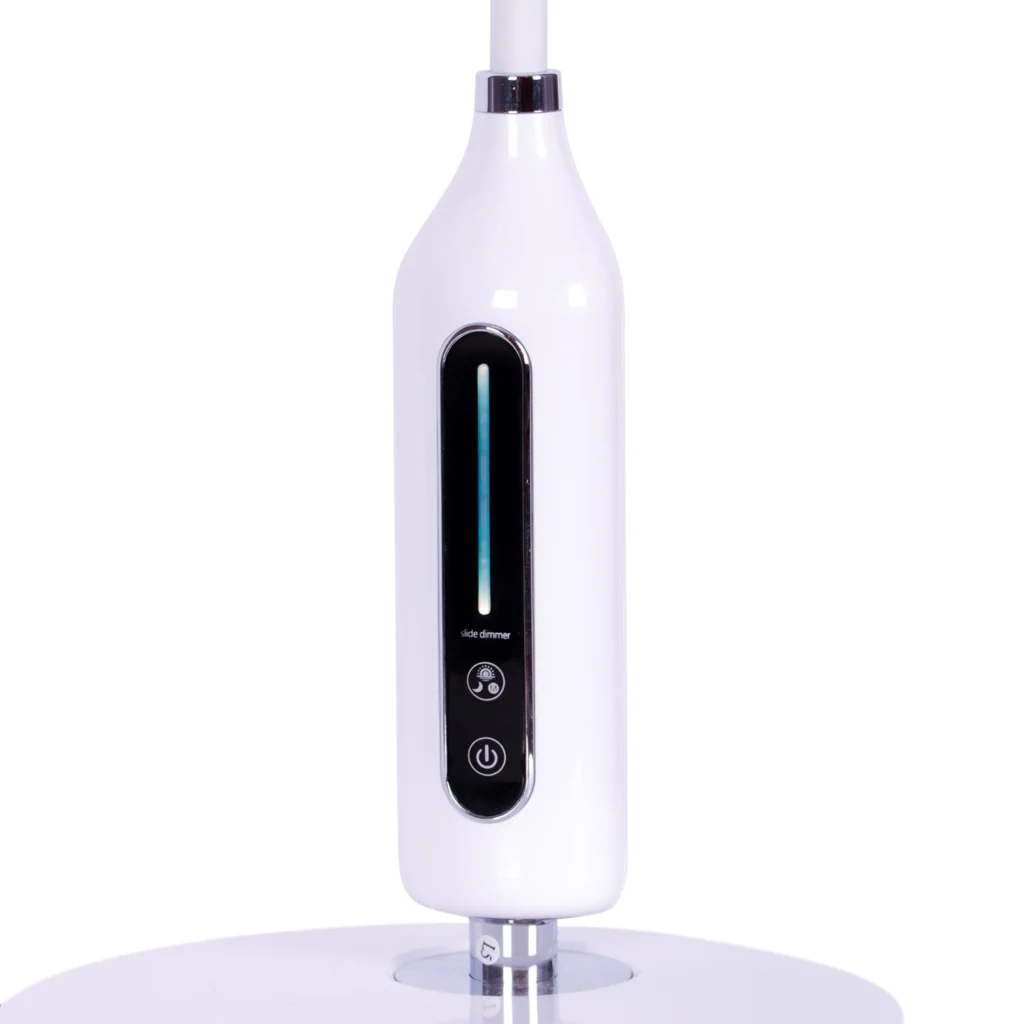Lampka biurkowa K-BL1072 Biała z serii MIDA świetnie prezentuje się na każdym modelu biurka, również na małych meblach. Lamka posiada elastyczne ramię – można je wyginać w każdym kierunku, dzięki czemu jest możliwość bardzo dokładnego dopasowania kąta padania światła. Lampka ma funkcję ściemniania światła. Jasność ustawia się za pomocą dotykowego potencjometru w postaci czułego, designerskiego paska. Lampa wyposażona jest także w 3-stopniowy tryb zmiany temperatury barwy (zimna, neutralna oraz ciepła). Zasilacz lampy jest odłączany.
