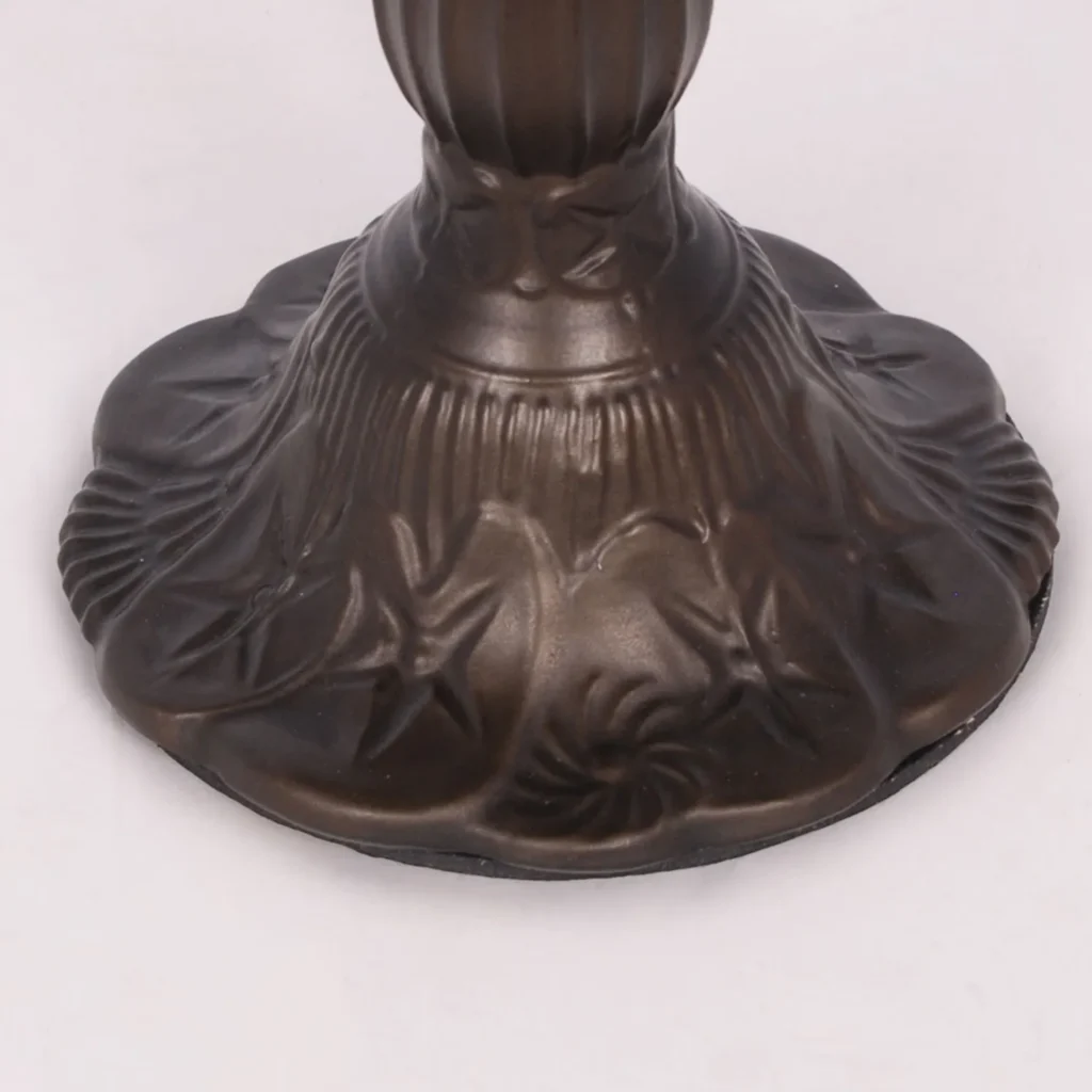 Lampka stołowa K-G08789 z serii TECO to wysokiej jakości lampa w stylu tiffany. Seria TECO charakteryzuje solidnym wykonaniem z metalu i szkła. Klosze tych lamp wykonane są ze szkła pokrytego masą perłową, co wpływa na rozproszenie światła. Taki zabieg sprawia, ze przebywanie w pomieszczeniu oświetlonym za pomocą tych lamp jest przyjemne i nie męczy oczu. Lampy TECO pełnią rolę nie tylko oświetleniową, ale również dekoracyjną. Model K-G08789 posiada klosz z motywem roślinno-zwierzęcym.