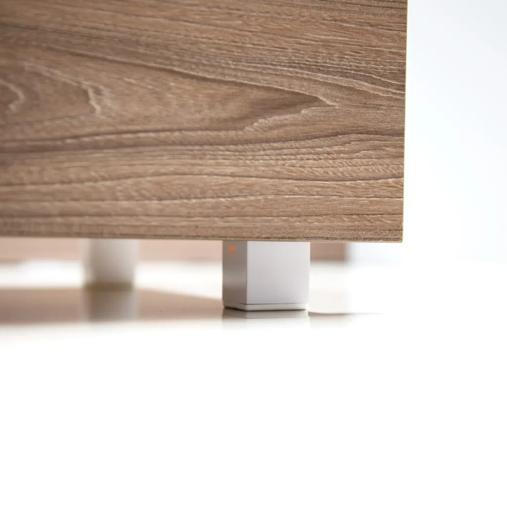 Nóżka przeznaczona jest do montażu u podstawy szafek, komód itp. Solidne wykonanie z aluminium sprawia, że zamontowana nóżka podnosi jakość i wygląd mebla. Posiada regulację wysokości +20 MM, dzięki temu jest możliwość dokładnego wypoziomowania.
