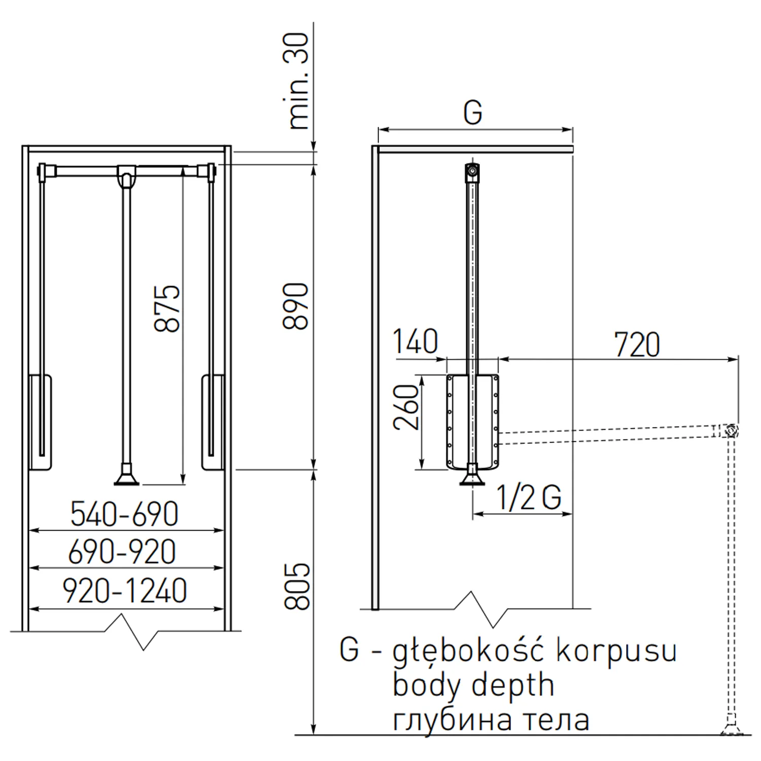 | Cechy produktu | Pantograf wyposażony w podnośnik olejowy, Możliwość regulacji szerokości wieszaka, Łatwy montaż |
