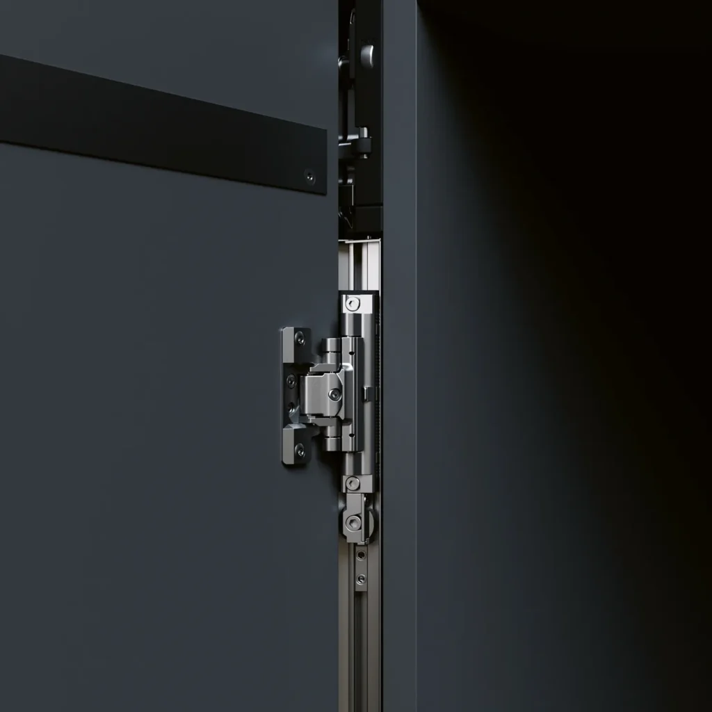 System przesuwnych drzwi Concepta3 to doskonałe rozwiązanie do otwartych przestrzeni mieszkaniowych. System ukrytych drzwi przesuwnych umożliwia ukrycie drzwi w niewielkiej bocznej wnęce wewnątrz szafy lub między szafą a ścianą. Umożliwia schowanie przestrzeni lub obszaru roboczego z zachowaniem zintegrowanej estetyki z pomieszczeniem. Podstawowy zestaw okuć należy połączyć z zestawem okuć do systemu PULL lub PUSH i profilem pionowym. Opcjonalnie można dokupić zestaw łączników.