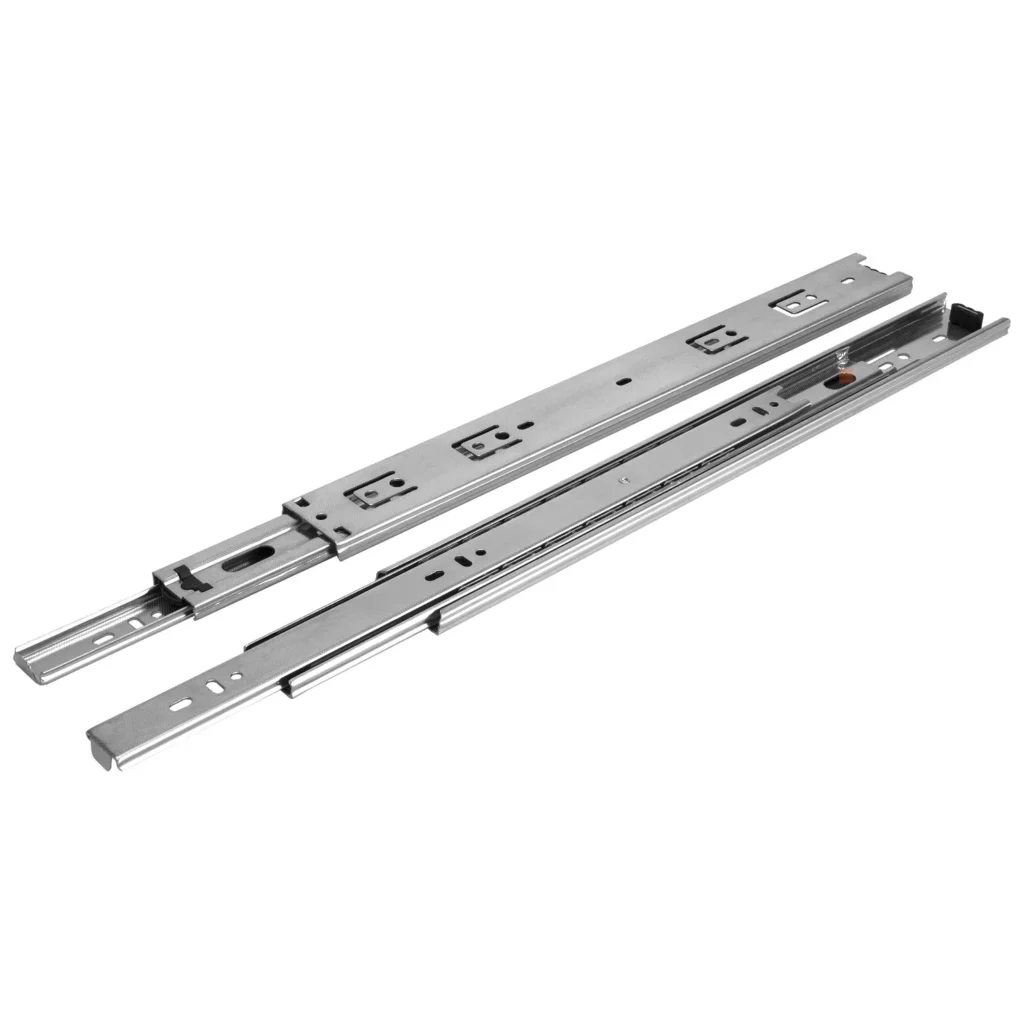 Prowadnica kulkowa do szuflad H-45 L-500 GTV Komplet z pełnym wysuwem, idealnie pasuje do szuflad meblowych. Prowadnica posiada możliwość demontażu części prowadnika oraz mechanizm zabezpieczający przed wypadnięciem szuflady. Wysokiej jakości prowadnica w niskiej cenie. Komplet dotyczy prowadnicy lewej i prawej.