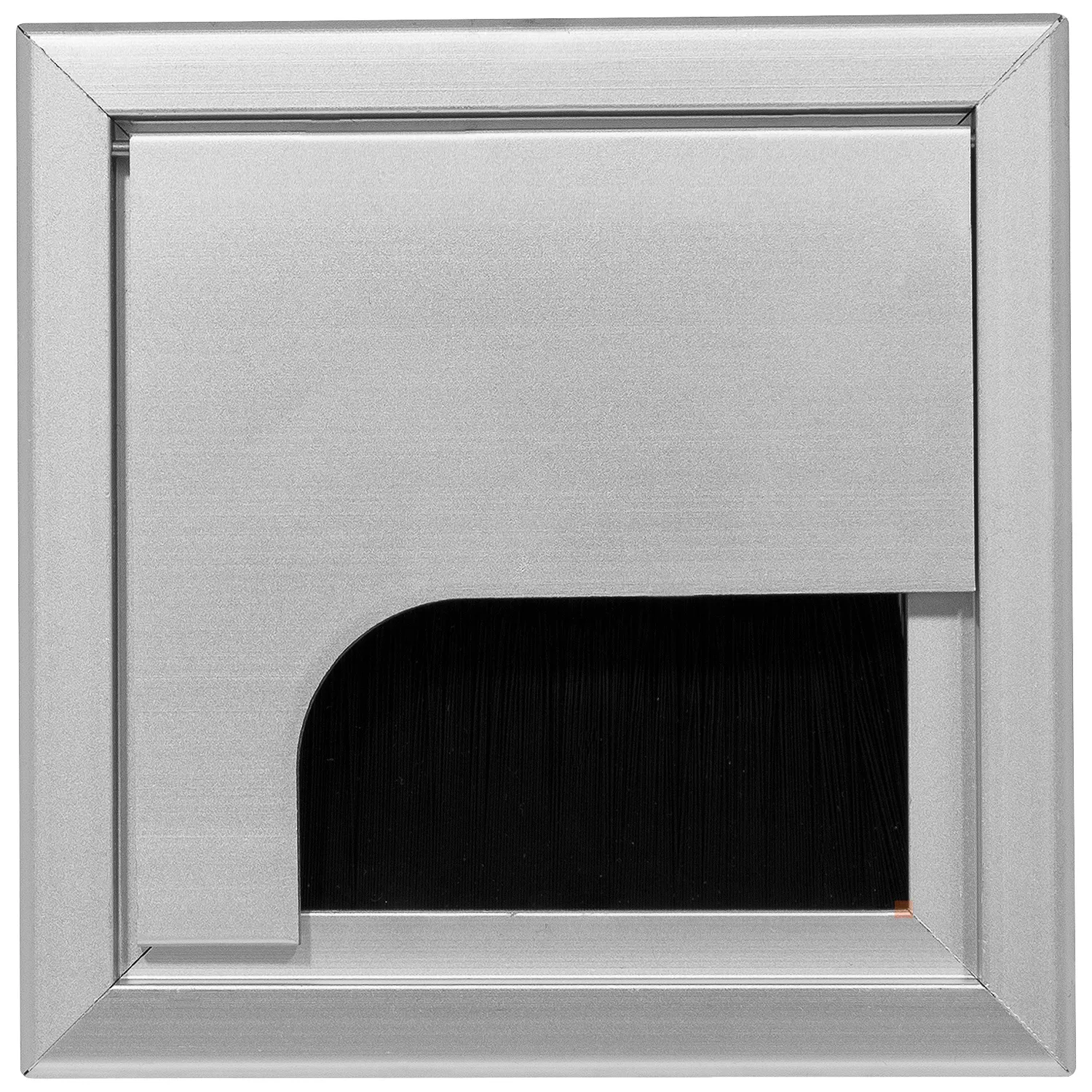 Przepust kablowy, Przelotka 80x80mm Merida aluminium idealnie nadaje się do przeprowadzenia przewodów podłączonych do komputera lub innych urządzeń elektronicznych przez blat biurka, ścianki mebli itp. Zapobiega przetarciom oraz przecięciu przewodów przez ostre krawędzie płyt meblowych. Wysokiej jakości produkt, precyzyjnie wykonany, wyposażony w pokrywkę oraz szczotkę maskującą. Przepust w kolorze aluminium, designerski wygląd.