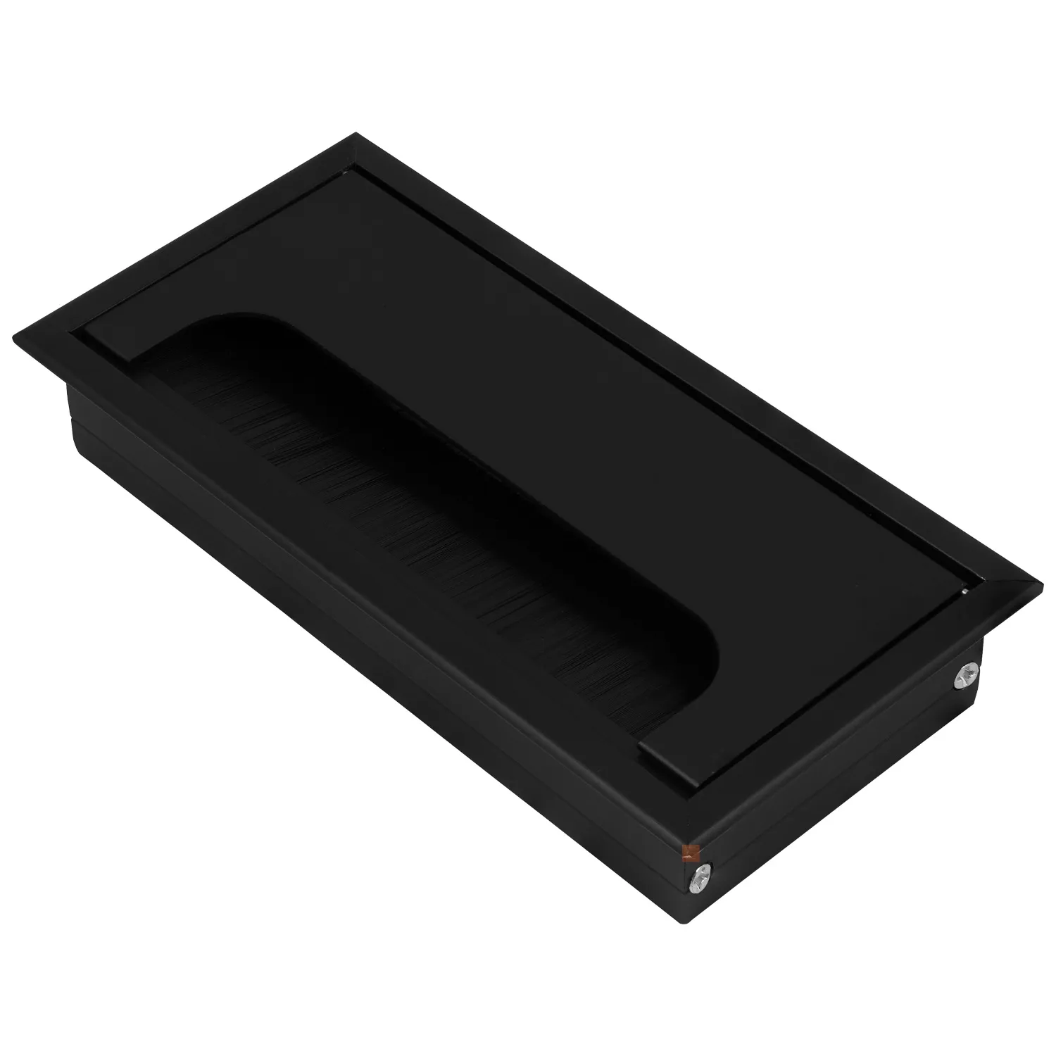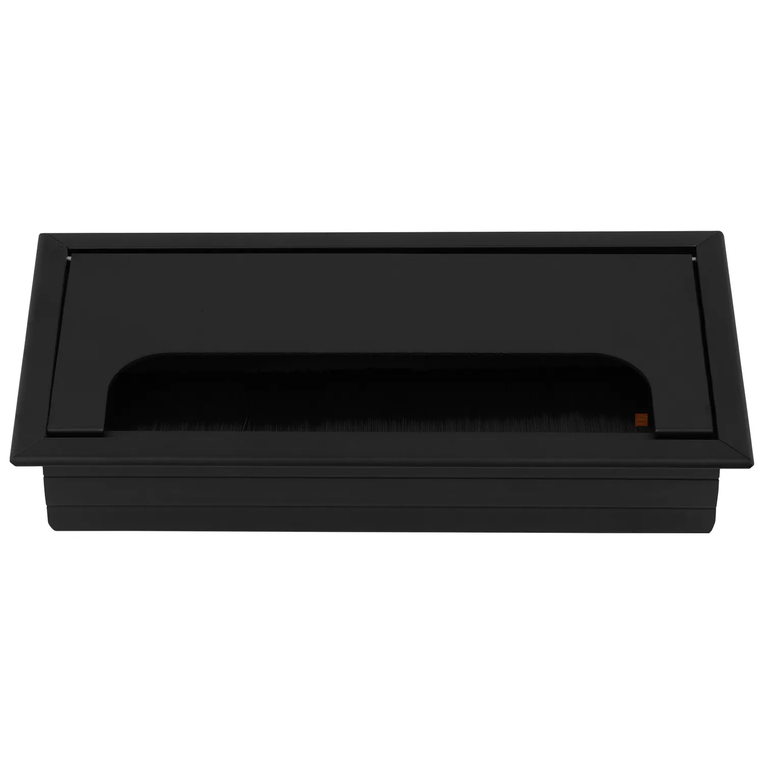Przepust kablowy aluminiowy prostokątny Merida 160x80mm Czarny idealnie nadaje się do przeprowadzenia przewodów podłączonych do komputera lub innych urządzeń elektronicznych przez blat biurka, ścianki mebli itp. Zapobiega przetarciom oraz przecięciu przewodów przez ostre krawędzie płyt meblowych.