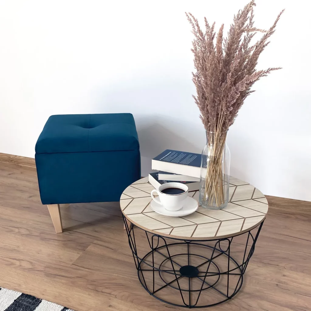 POJEMNY SCHOWEK W ŚRODKU PUFY
