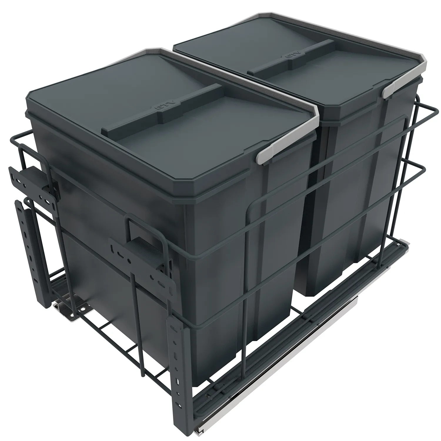 Stelaż sortownika w kolorze grafitowym, Komplet prowadnic pełnego wysuwu z cichym domykiem, 2x Pojemnik 15 L