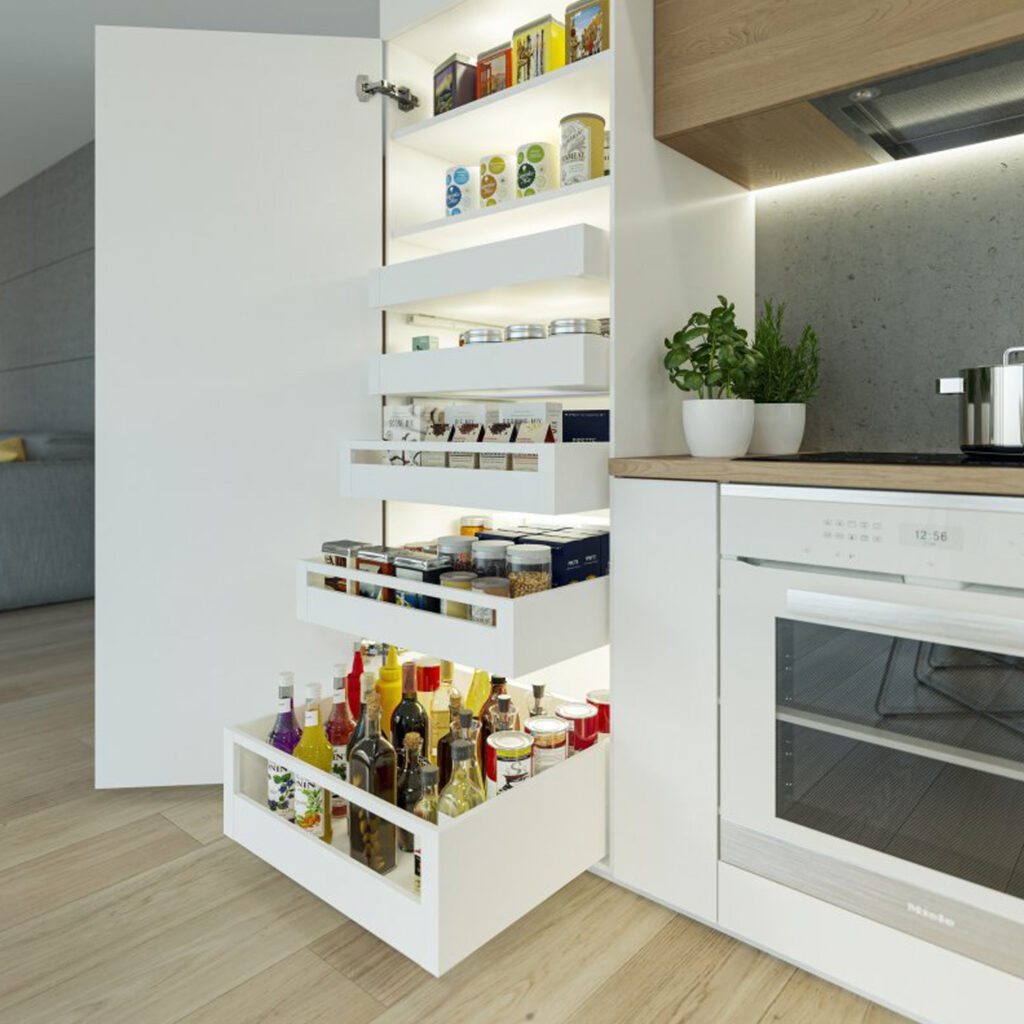 Szuflada AXIS PRO L-350mm Niska biała, to nowoczesny system do zabudowy szuflad charakteryzujący się wysoką trwałością certyfikowaną na 60 000 cykli. Szuflady Axis Pro wyposażone są w system pełnego wysuwu, który zapewnia łatwy i nieograniczony dostęp do zawartości szuflady. Prowadnice posiadają funkcję miękkiego domyku co gwarantuje cichą i przyjemną pracę. Bok szuflady ma szerokość tylko 14mm, dzięki czemu można maksymalnie wykorzystać wewnętrzną przestrzeń mebla. Szuflada wytrzymuje obciążenie aż do 40 kg. Montaż szuflad Axis Pro jest niezwykle prosty dzięki regulacji od wewnętrznej strony, regulacji pochylenia oraz regulacji poziomej w zakresie +- 2 mm.