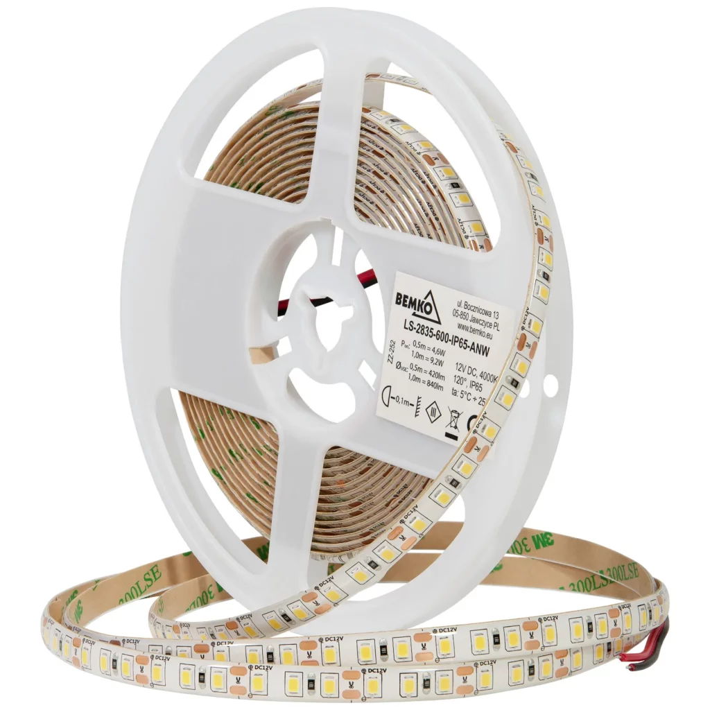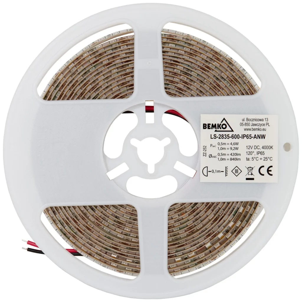 Taśma LED 2835-600 biały neutralny 12V 5m IP65, produkt polskiego producenta BEMKO.