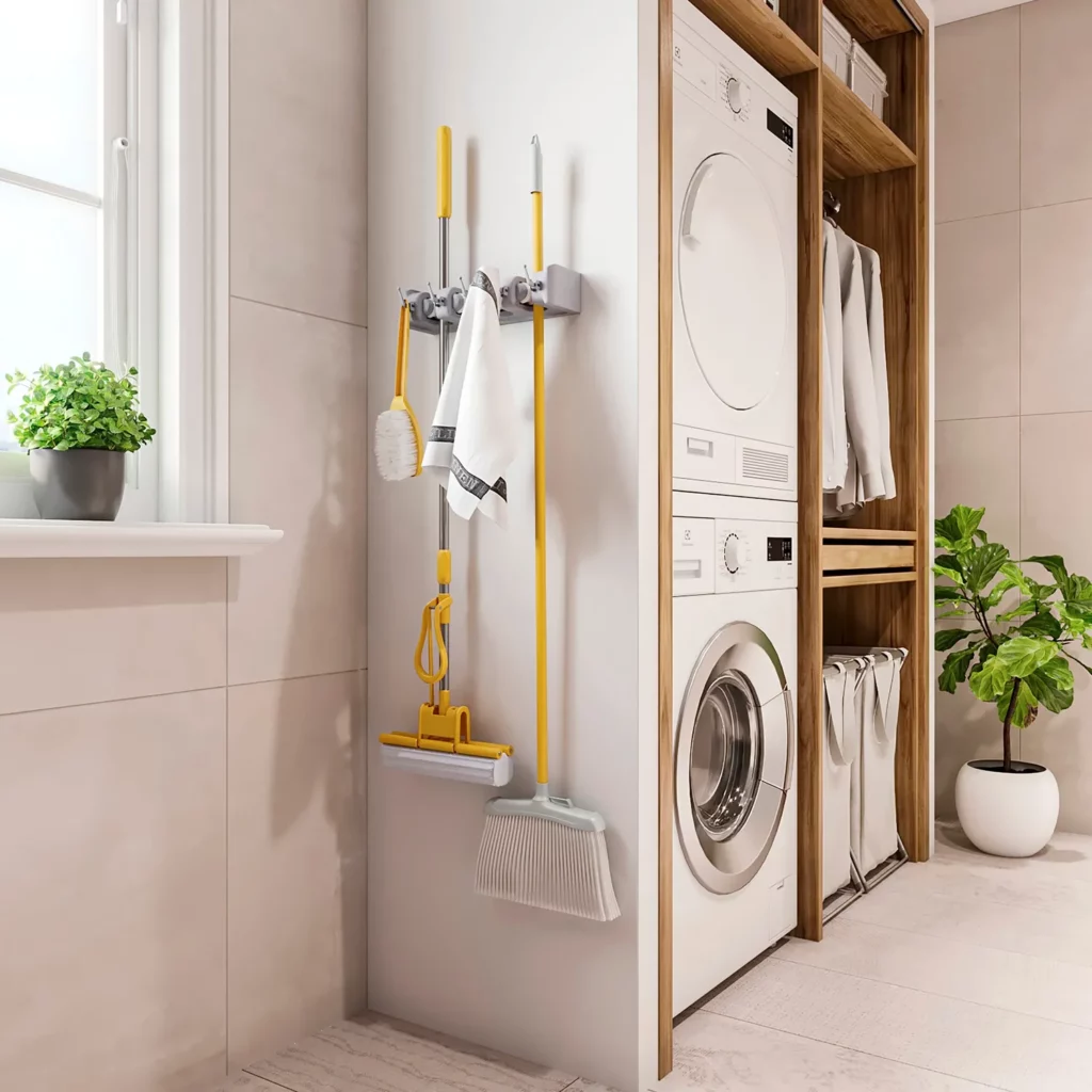 Wieszak przeznaczony jest do przechowywania różnych narzędzi do sprzątania, takich jak: miotły, szufelki, mopy, grabie, ścierki. Dzięki chwytowi w prosty sposób można uporządkować miejsce przechowywania sprzętów przeznaczonych do utrzymania czystości. Uchwyt skonstruowany został z kulek obrotowych, które dopasowują się do kija i mocno go trzymają. Można go w łatwy sposób odblokować delikatnie unosząc trzonek narzędzia.