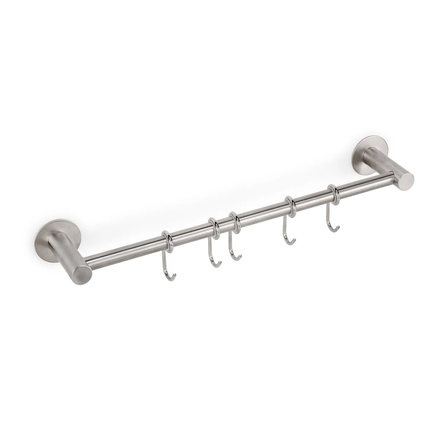 Regulowany wieszak kuchenny z 5 haczykami Można na nim wieszać przybory kuchenne kubki lub ściereczki. Ten wieszak kuchenny pomoże Ci utrzymać porządek w wielu rodzajach przyborów kuchennych. Poza tym można go montować na wiele sposobów, co pozwala go dopasować w różnych miejscach w kuchni. Wyróżnia się łatwością montażu en el mueble na szafkach dzięki zastosowaniu taśmy samoprzylepnej.