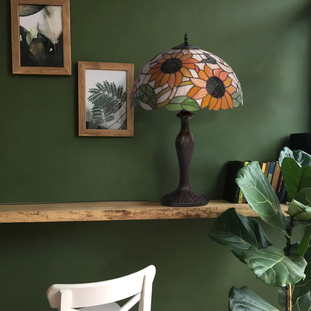 Witrażowa lampa stołowa K-G16814 z serii SUNFLOWER