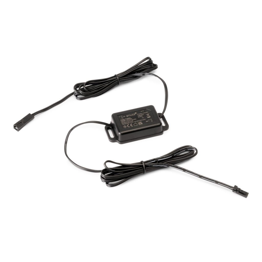 W tego typu instalacjach maksymalna moc wynosi 36W przy 12V DC i 72W przy 24V DC. Czujnik jest wykonany z tworzywa sztucznego o czarnym wykończeniu i posiada przewody wejściowe i wyjściowe o długości 1,5 m z połączeniami Miniled. Charakteryzuje się niskim zużyciem energii i ochroną przed zakłóceniami elektrycznymi, co zapewnia stabilne działanie.