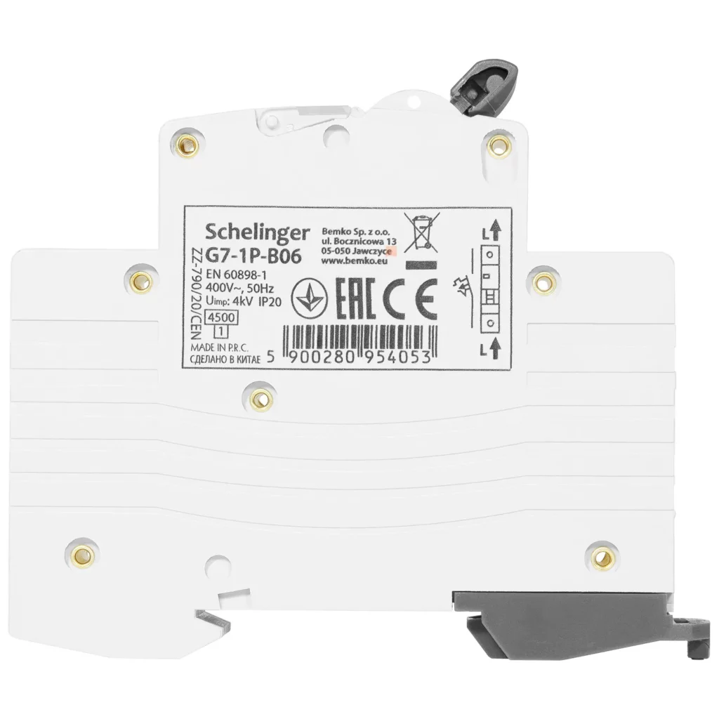 Wyłącznik bezpiecznik nadprądowy 1P B6A jest elementem instalacji elektrycznej służącym do przerwania ciągłości obwodu, kiedy prąd przekracza wartość bezpieczną dla danego obwodu. Jego zadaniem jest stertowanie i zabezpieczenie przed skutkami przeciążeń i zwarć obwodów odbiorczych instalacji i urządzeń elektrycznych, aby nie uległy uszkodzeniu. Wyłącznik wyposażony jest w okienko do opisu. Montaż na szynie DIN35.