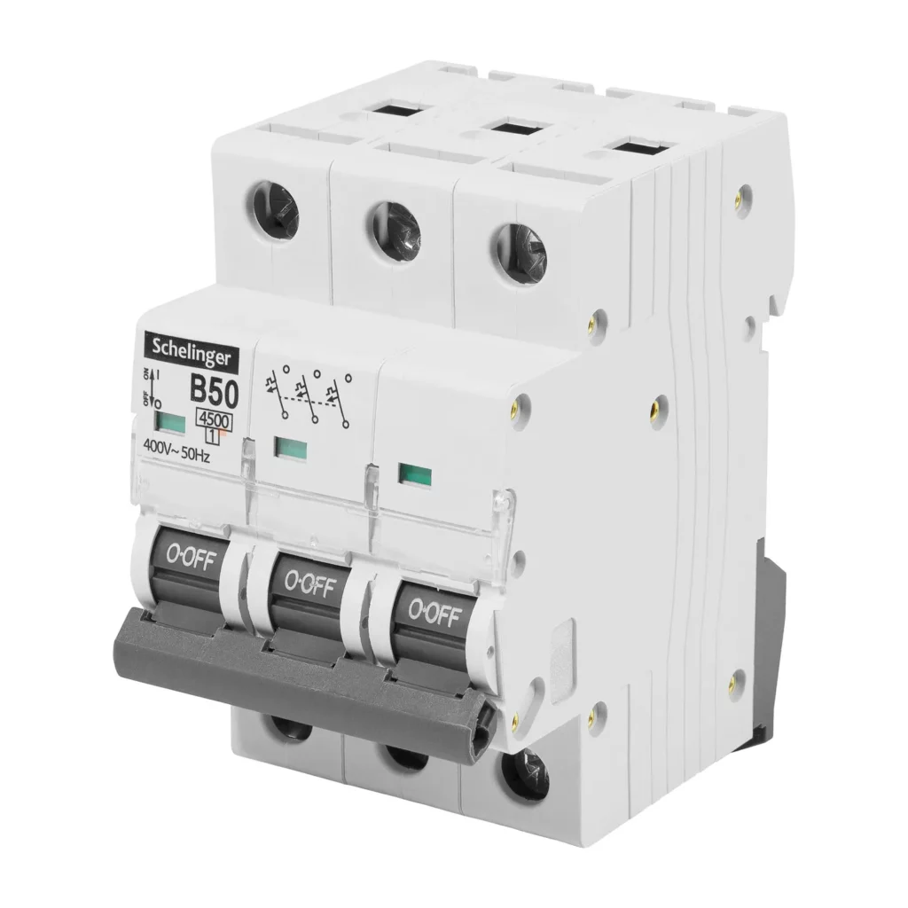 Wyłącznik bezpiecznik nadprądowy 3P B50A jest elementem instalacji elektrycznej służącym do przerwania ciągłości obwodu, kiedy prąd przekracza wartość bezpieczną dla danego obwodu. Jego zadaniem jest stertowanie i zabezpieczenie przed skutkami przeciążeń i zwarć obwodów odbiorczych instalacji i urządzeń elektrycznych, aby nie uległy uszkodzeniu. Wyłącznik wyposażony jest w okienko do opisu. Montaż na szynie DIN35.