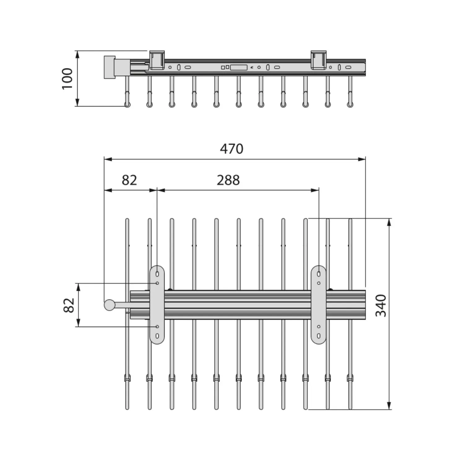 Zawiera 11 metalowych prętów z antypoślizgowymi gumkami, które zapobiegają zsuwaniu się ubrań. Praktyczny uchwyt ułatwia wysuwanie, a możliwość montażu z lewej lub prawej strony zwiększa elastyczność użytkowania.