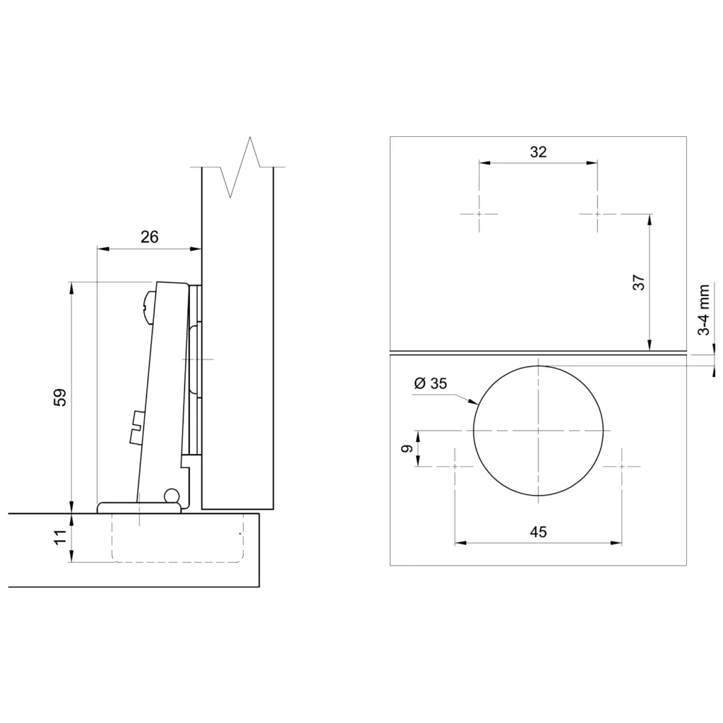 | Zestaw zawiera | Zawias nakładany, Prowadnik H-0 |