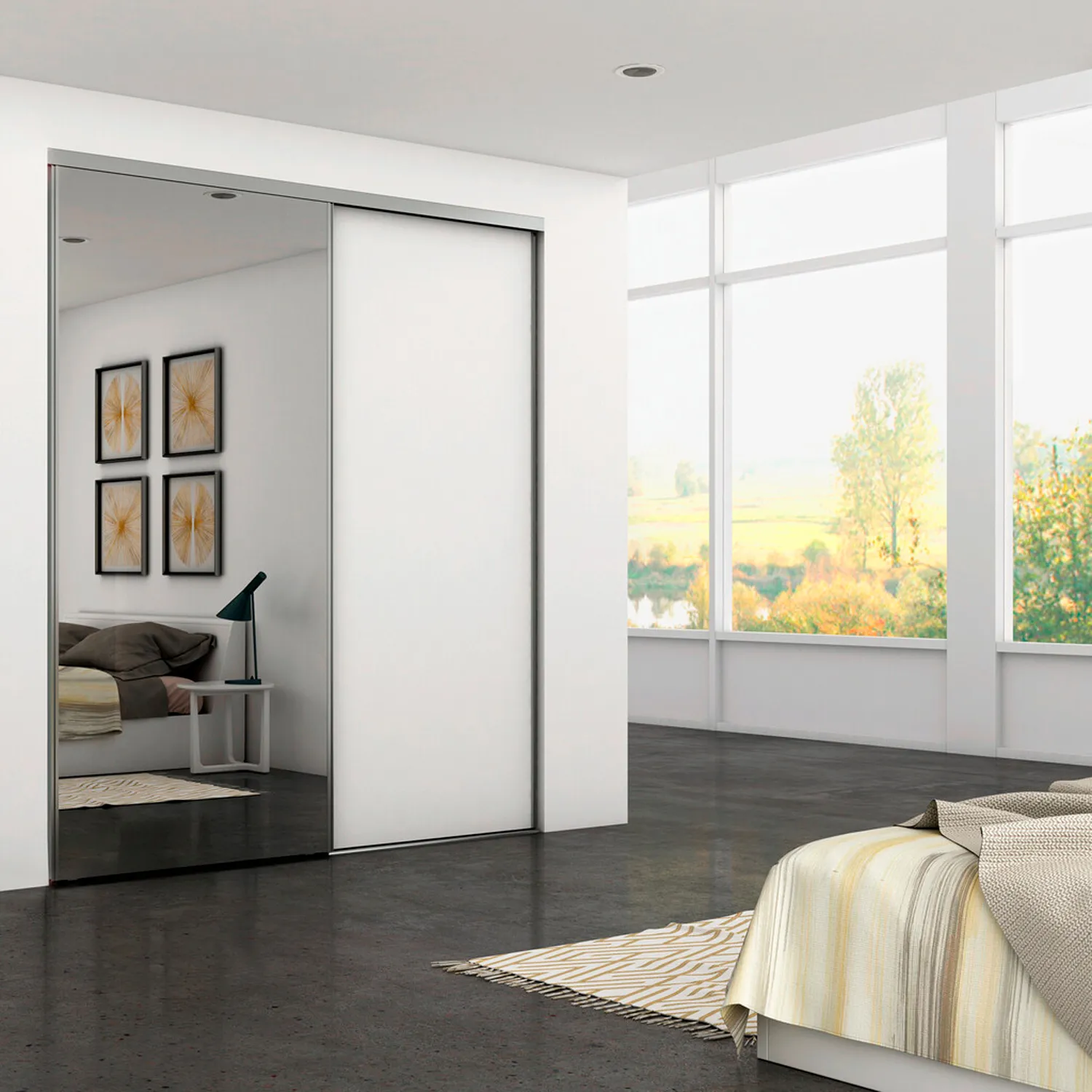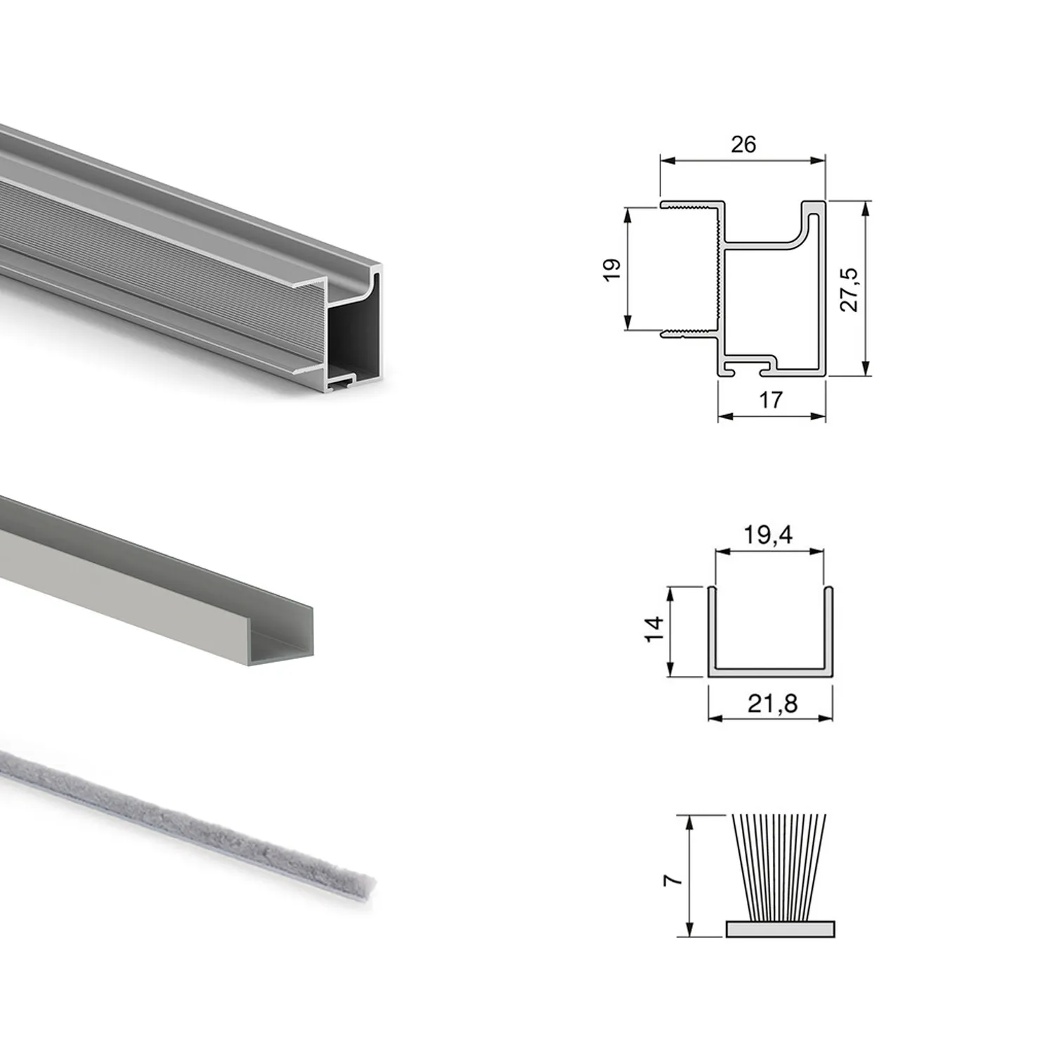 Zestaw do szafy Placard z dwoma przesuwanymi drzwiami zawiera kompletny osprzęt i profile niezbędne do montażu systemu – z wyjątkiem płyty meblowej. Umożliwia stworzenie funkcjonalnej szafy lub garderoby z dwoma drzwiami przesuwnymi, opartymi na dolnym prowadzeniu, zapewniającym cichą i płynną pracę.