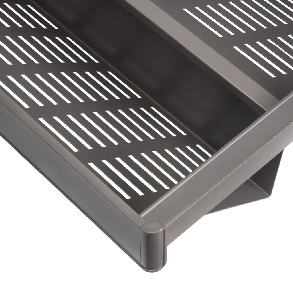 Praktyczna szuflada na buty z pełnym wysuwem i systemem cichego domykania, idealna do szaf i garderób. Wytrzymuje obciążenie do 30 kg, oferując wygodny i łatwy dostęp do obuwia. Pasuje do modułów o szerokości wewnętrznej 762 – 788 mm (M80) i minimalnej głębokości 460 mm. Regulacja prowadnic do 13 mm pozwala na precyzyjne dopasowanie do przestrzeni szafy.
